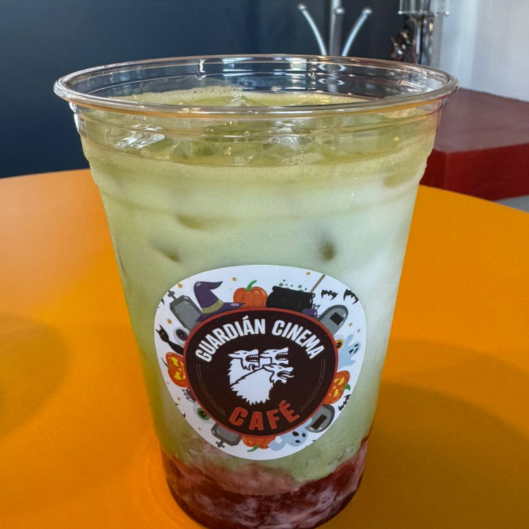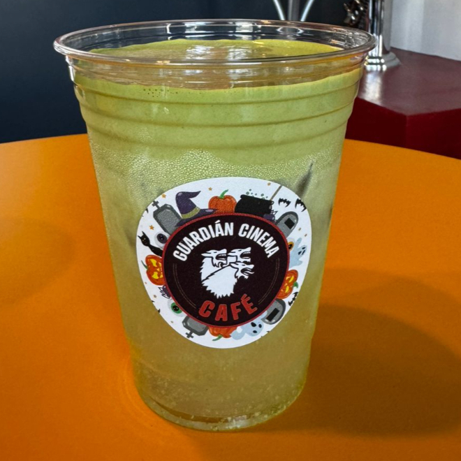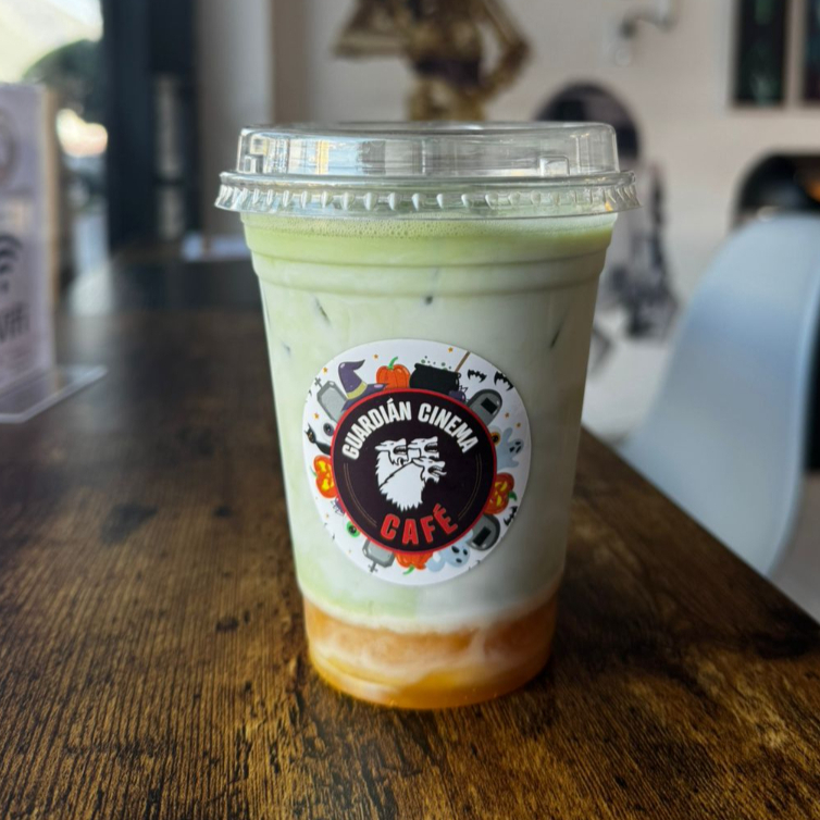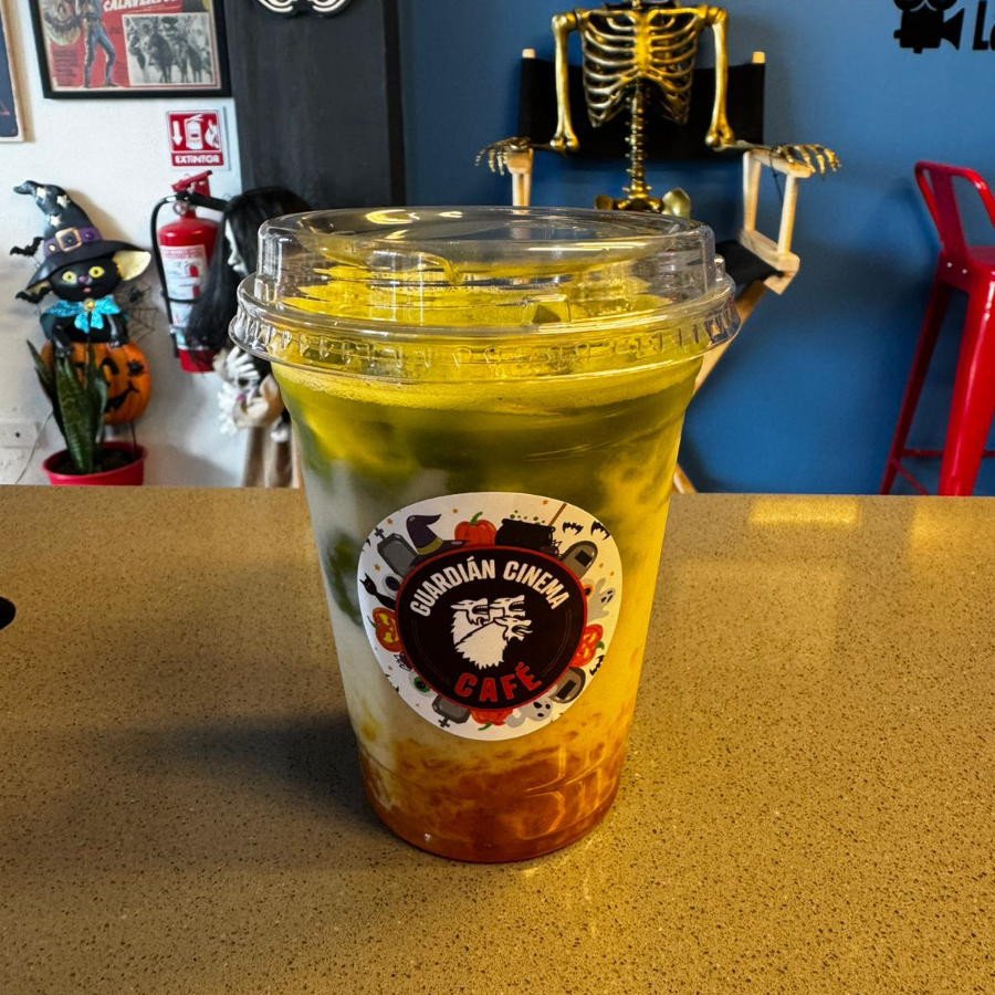Agua de coco con un cold foam de matcha ceremonial encima, una bebida muy refrescante con un sabor único