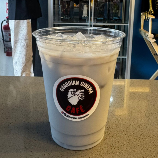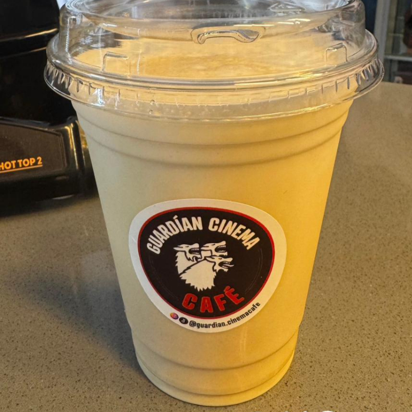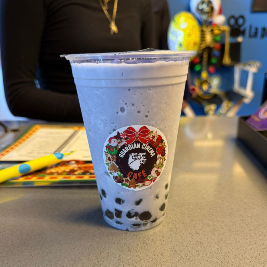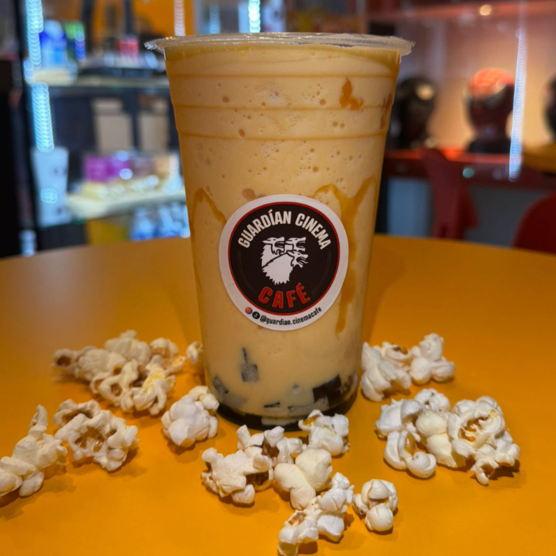 La bebida de la casa, hielo molido con sabor a palomita acaramelada y un toque de palomita de sal, con pperlas de tapioca