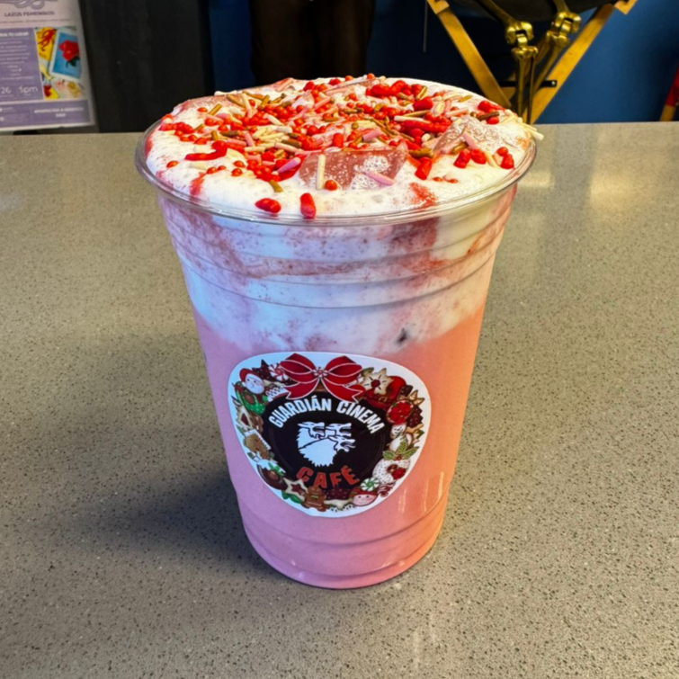 La leche de tu preferencia con sabor a berries. Sino tomas café está es tu bebida ideal