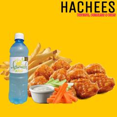 26 boneles bañados en tu salsa favorita acompañados de bastones de apio y zanahoria y 500 gramos de french fries