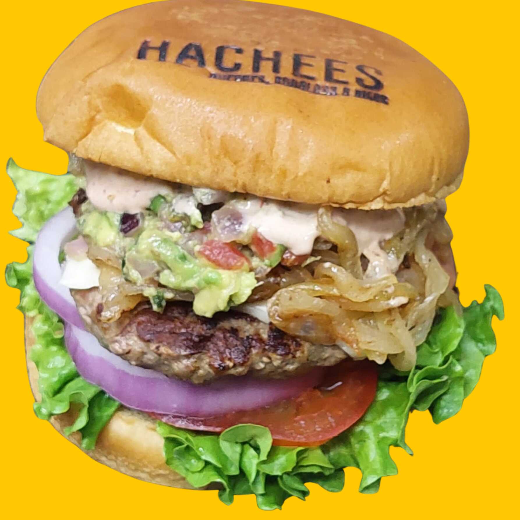 Lechuga, tomate, cebolla morada, mayonesa, queso manchego, jamón, cebolla caramelizada, ranchipotle y delicioso guacamole.