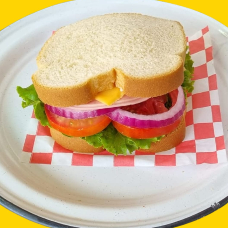 El clásico sandwich con mayonesa, lechuga, tomate, jamon y queso americano.