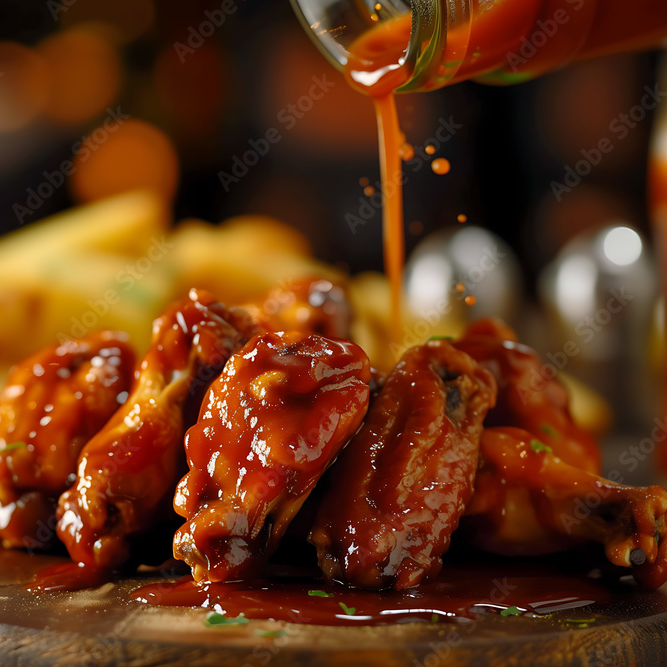 bañados en salsa bufalo acompañados de aderezo apio y zanahoria