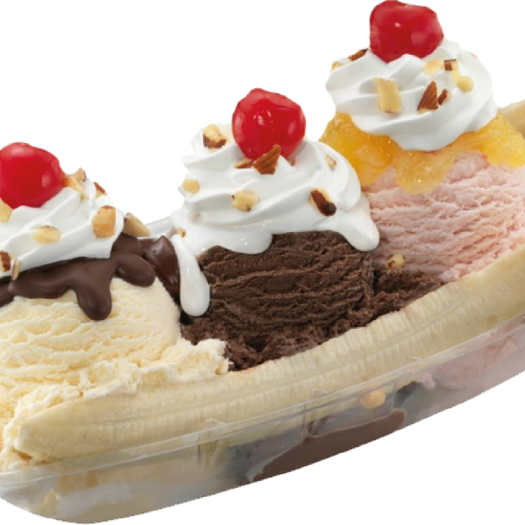 Elige cualquier sabor de helado, terminada con crema batida y cereza.