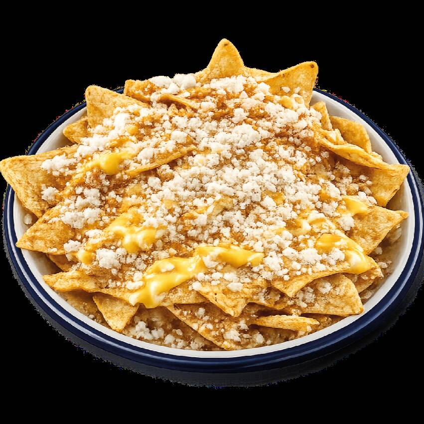 Totopos de Maiz bañado con frijol puerco y queso especial de la casa