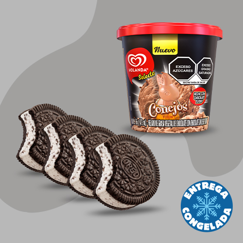 473ML de Helado OREO + 2 Paletas de helado sabor chocolate hecha con chocolate turín. Con icónica forma de conejito turín. 70 ml.