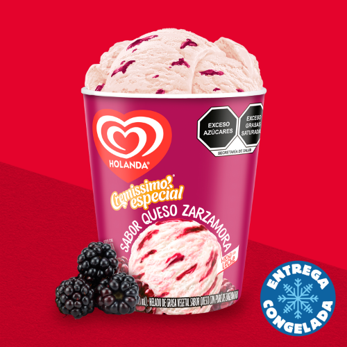 Delicioso helado sabor queso con puré de zarzamora. 900ml