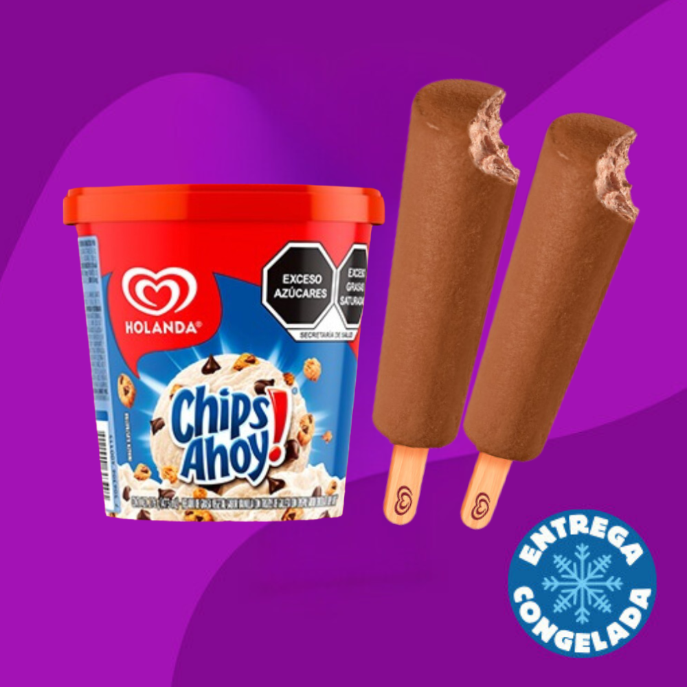 473ml de Helado Chips Ahoy! + 2 Paletas Minimilk de 35ml