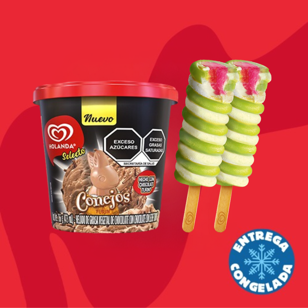Helado Napolitano 900ml + 2 Paletas Conejos Turín
