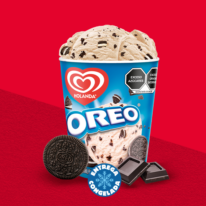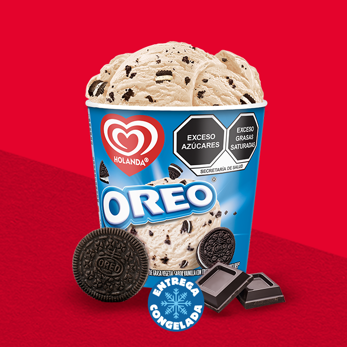Medio litro de helado de vainilla con trozos de galleta Oreo®. Una combinación irresistible que te hará sonreír en cada bocado. Contenido: 473ml.