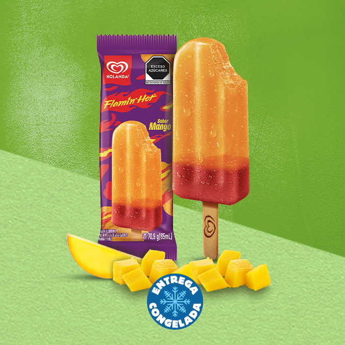 Refresca tu día con nieve de mango y el delicioso toque Flamin Hot. Ideal para los días calurosos. Contenido: 900ml.