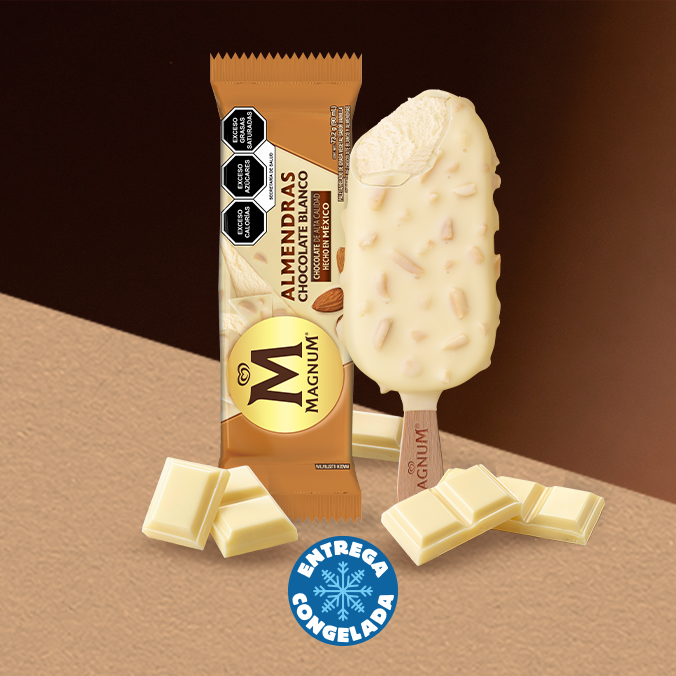 Un placer crujiente y delicioso que no podrás resistir. Dos paletas Magnum Almendras Chocolate Blanco de 90 ml.