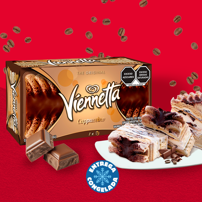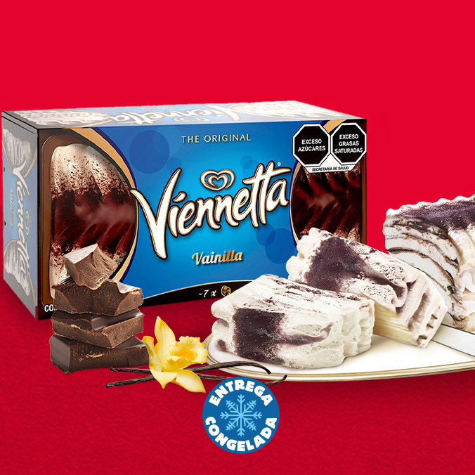 Deliciosas capas de helado cremoso con sabores de vainilla y chocolate, perfectas para compartir en celebraciones y momentos especiales en familia. El combo incluye una Viennetta Cappuchino y una Viennetta Vainilla.