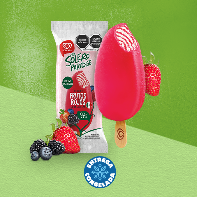 Disfruta de dos paletas con una deliciosa combinación de helado de vainilla con frutos rojos de Michoacán. Cada paleta tiene un contenido de 94ml, ideal para un antojo saludable y delicioso.