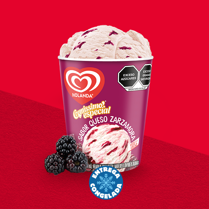 Helado de grasa vegetal sabor queso con veta de zarzamora. Una combinación única y deliciosa. Contenido: 900ml.