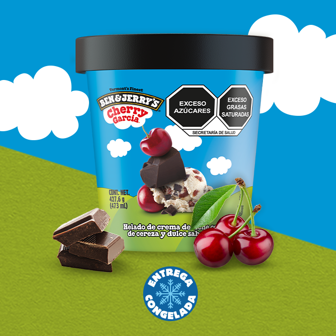 Disfruta de este helado de cereza de 473ml, con hojuelas de chocolate oscuro y trozos de cereza. Un clásico de Ben & Jerry's que no puedes dejar de probar.