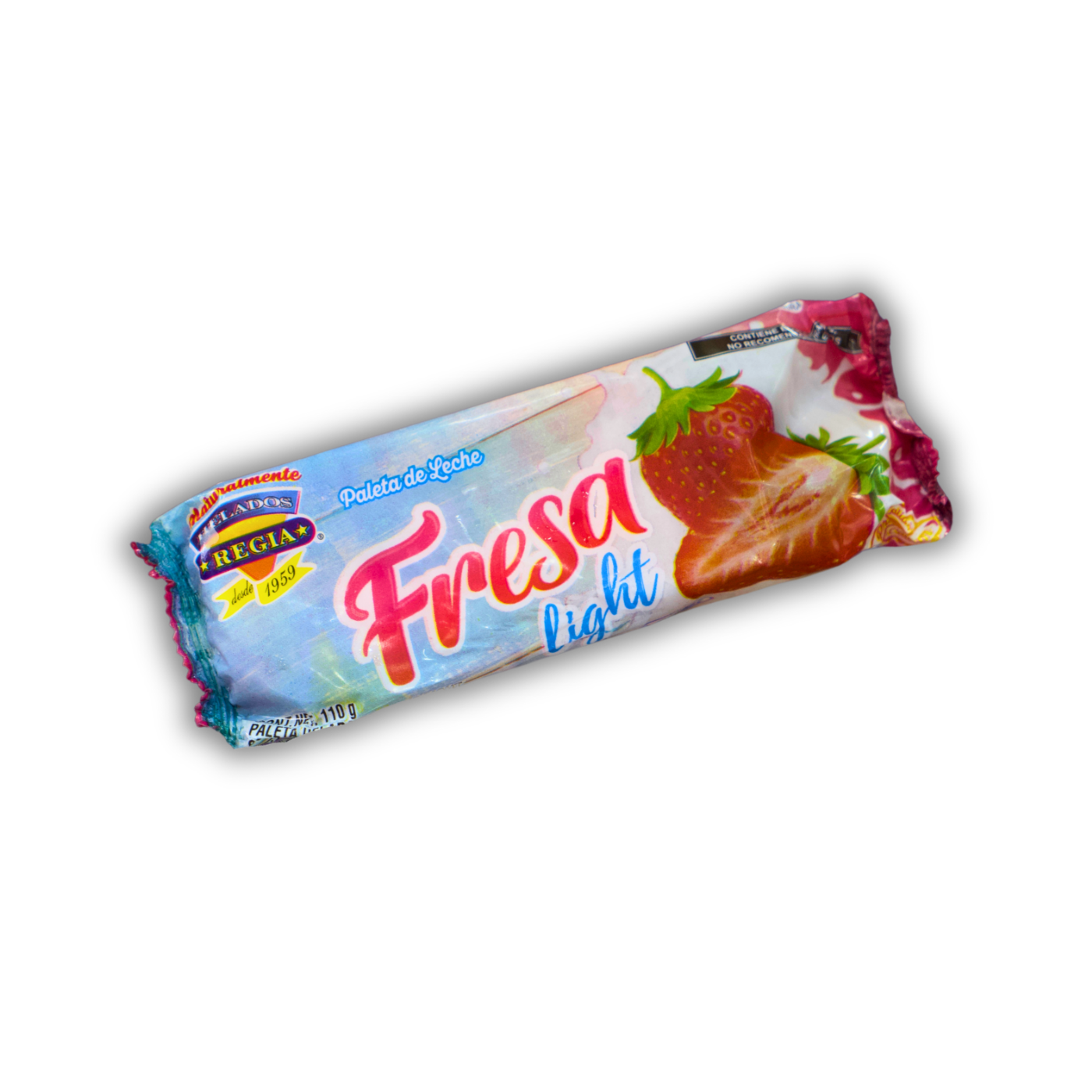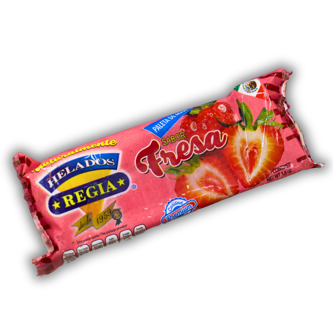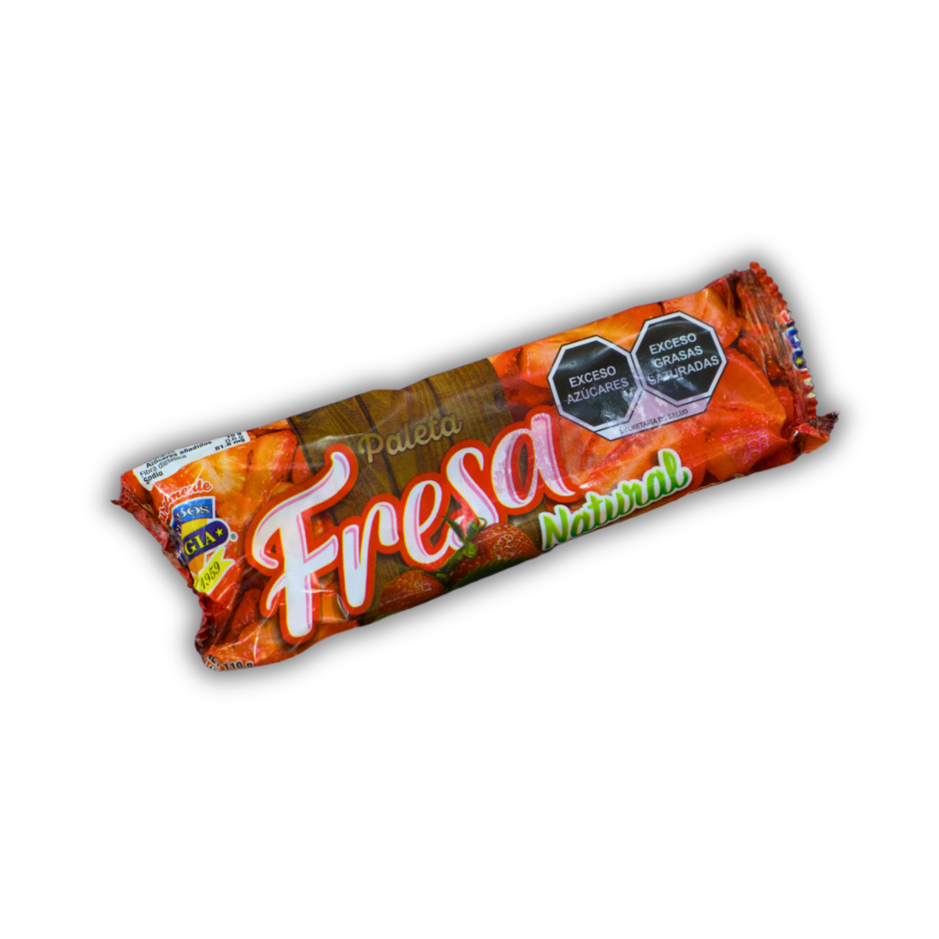 Paleta elaborada a base de agua con trozos de fresa natural.
