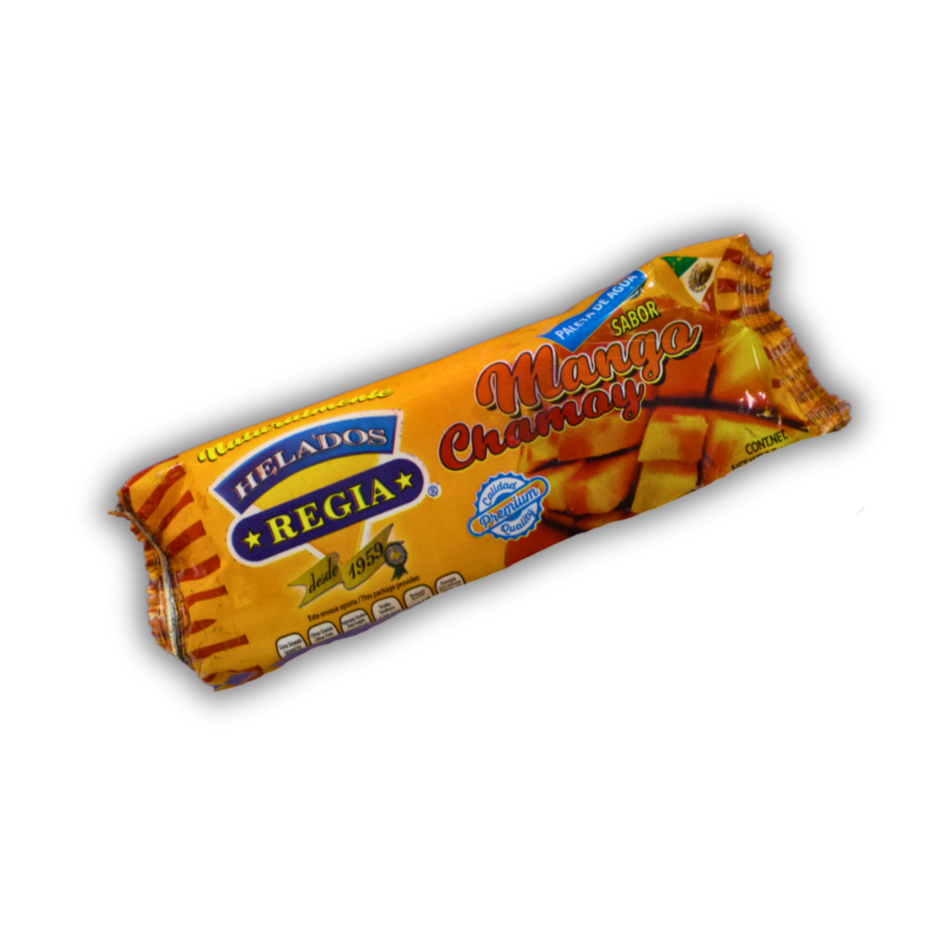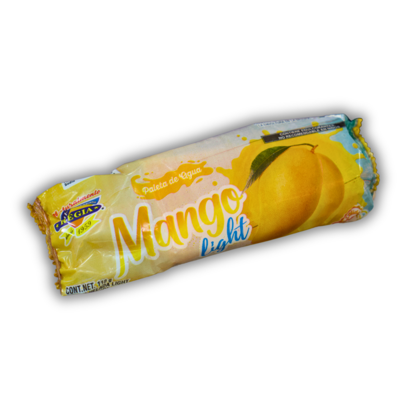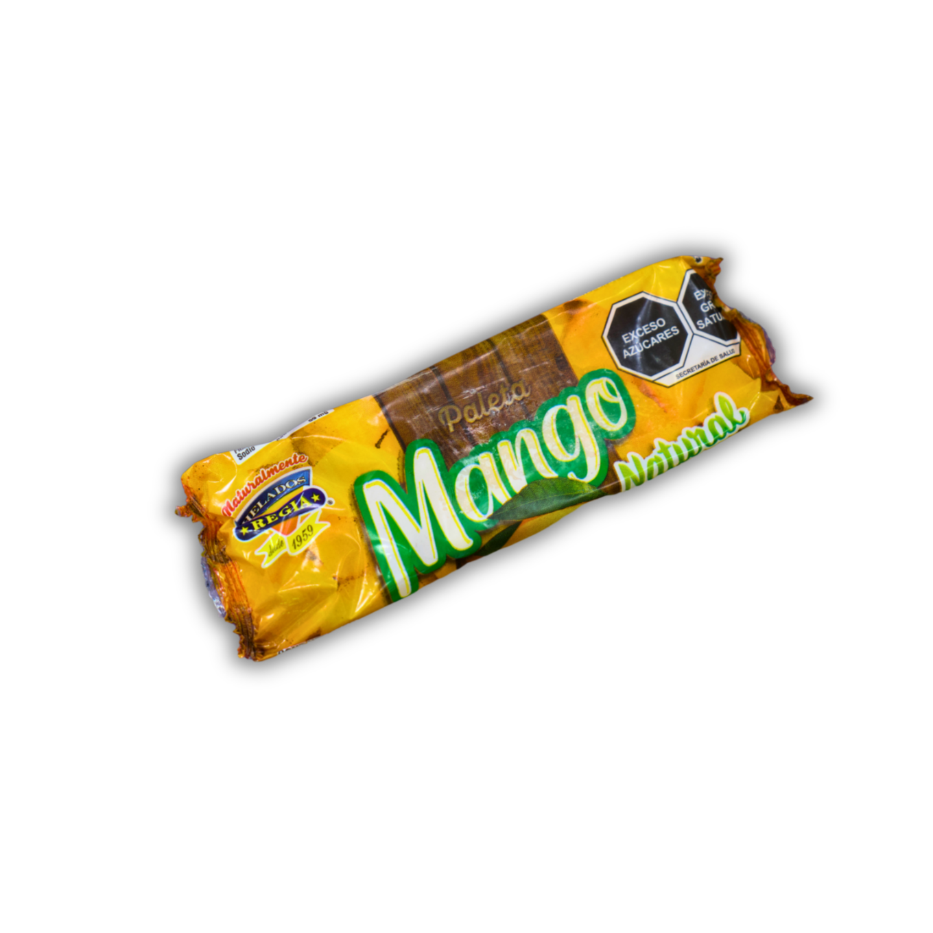 Paleta elaborada a base de agua sabor chamoy con trozos de mango natural