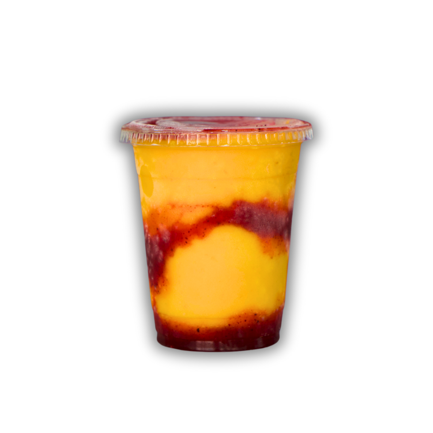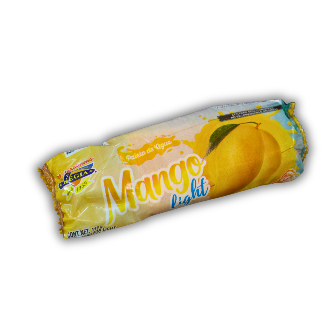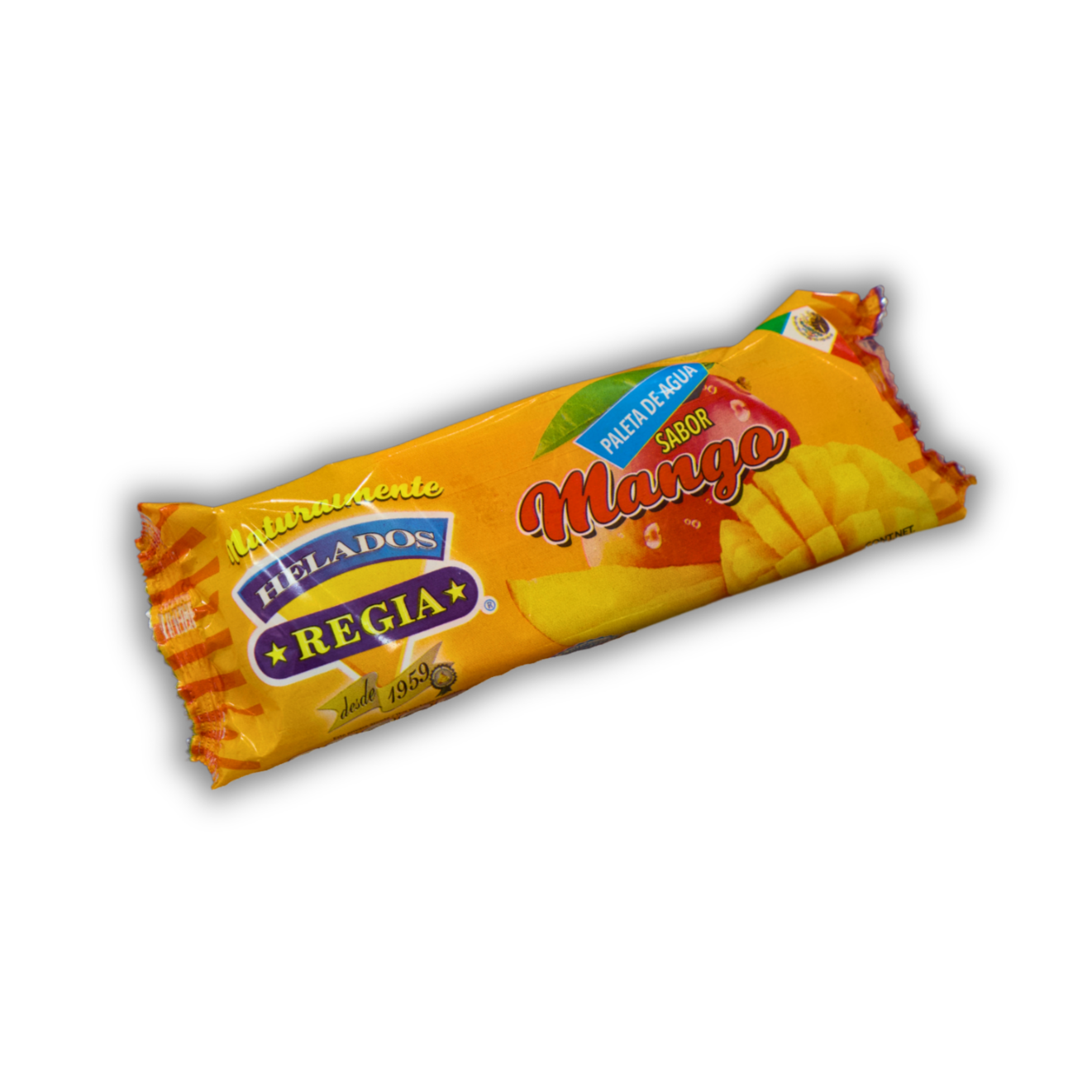 Paleta elaborada a base de agua sabor chamoy con trozos de mango natural