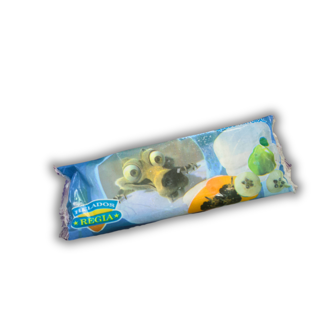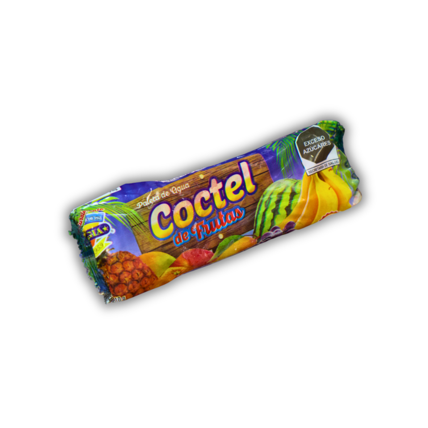 Paleta elaborada a base de agua con trozos de fruta natural.