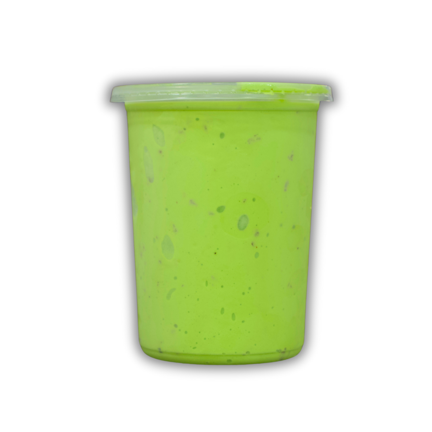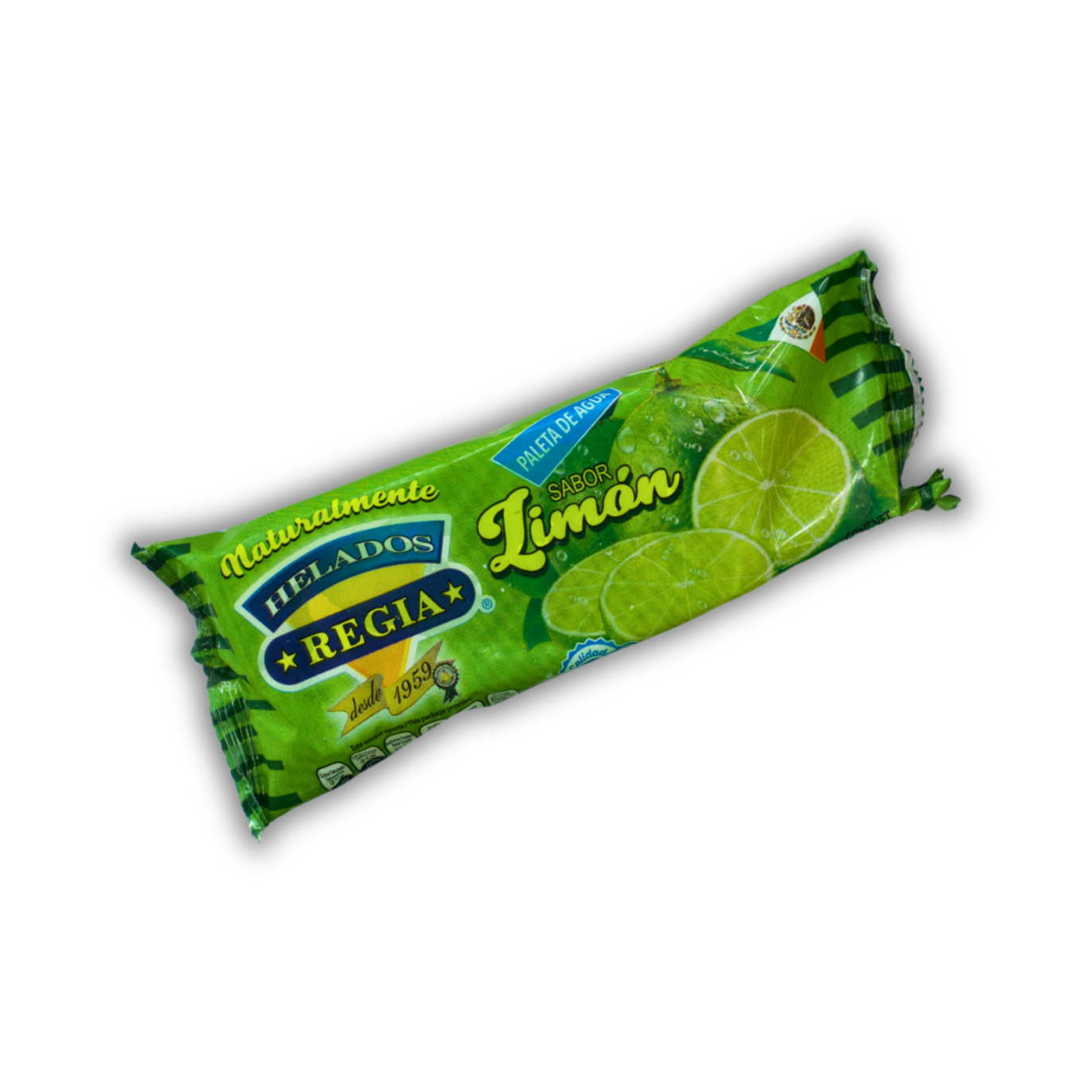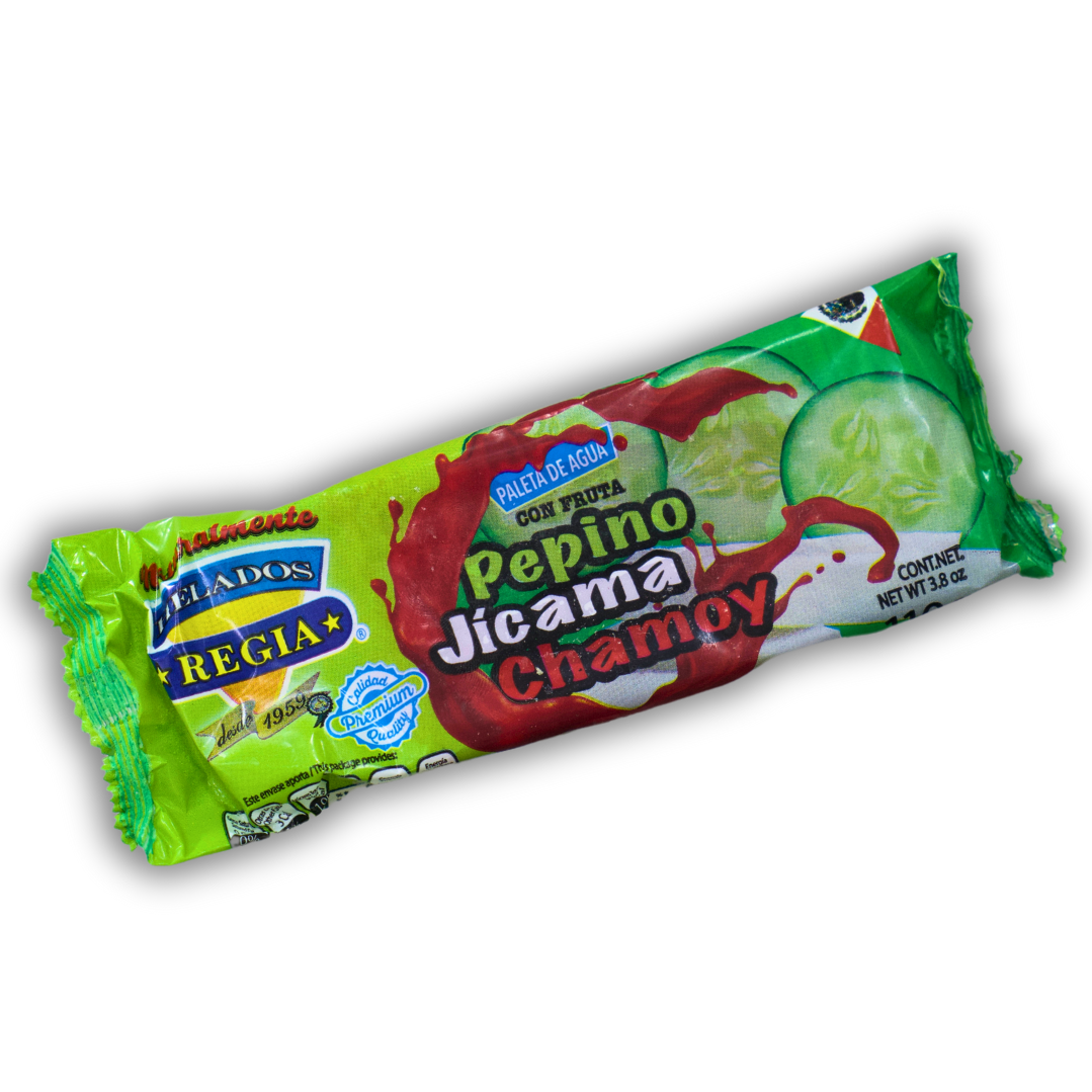 Paleta hecha a base de agua sabor pepino, jícama y chamoy.