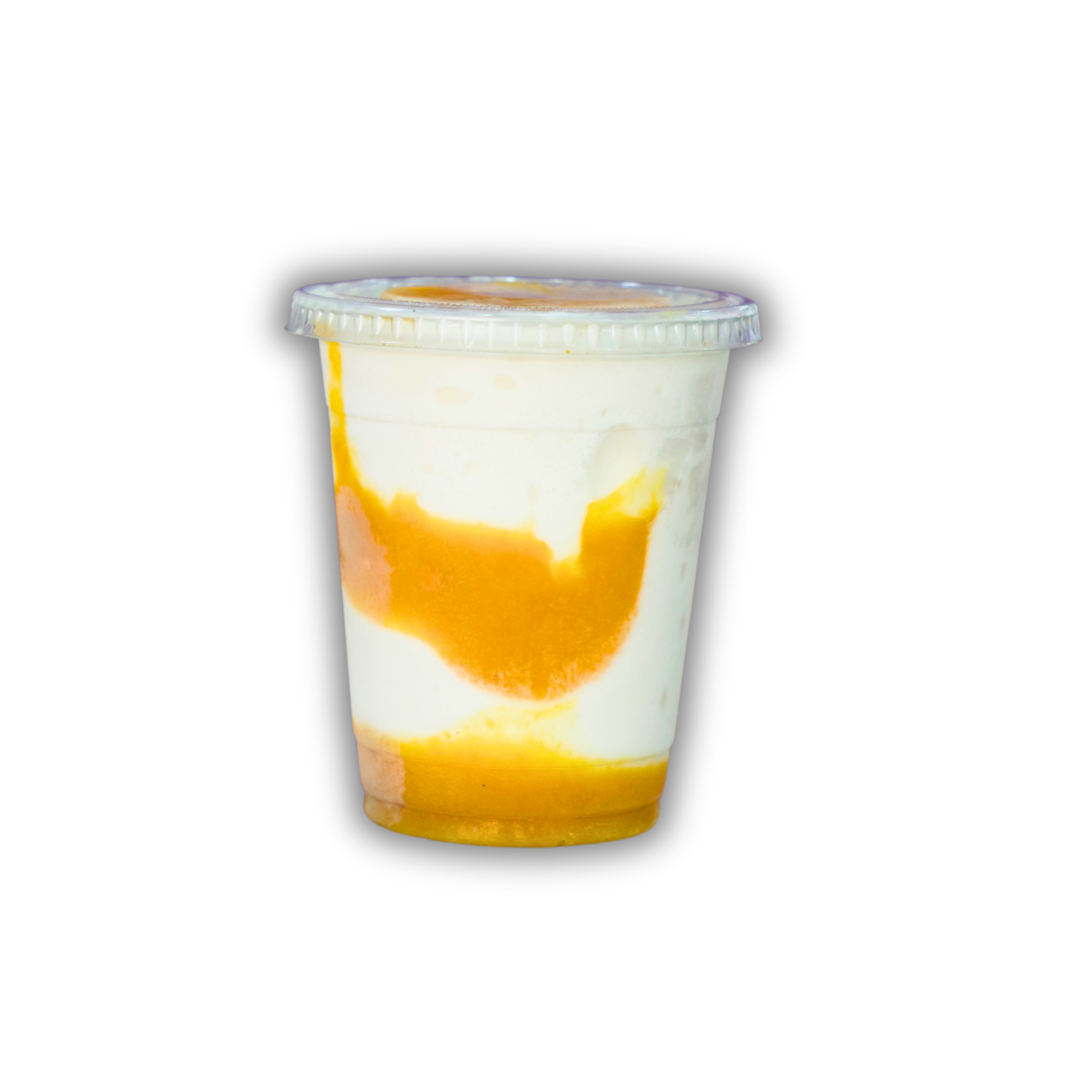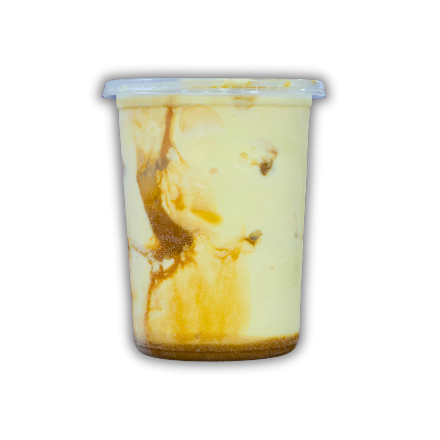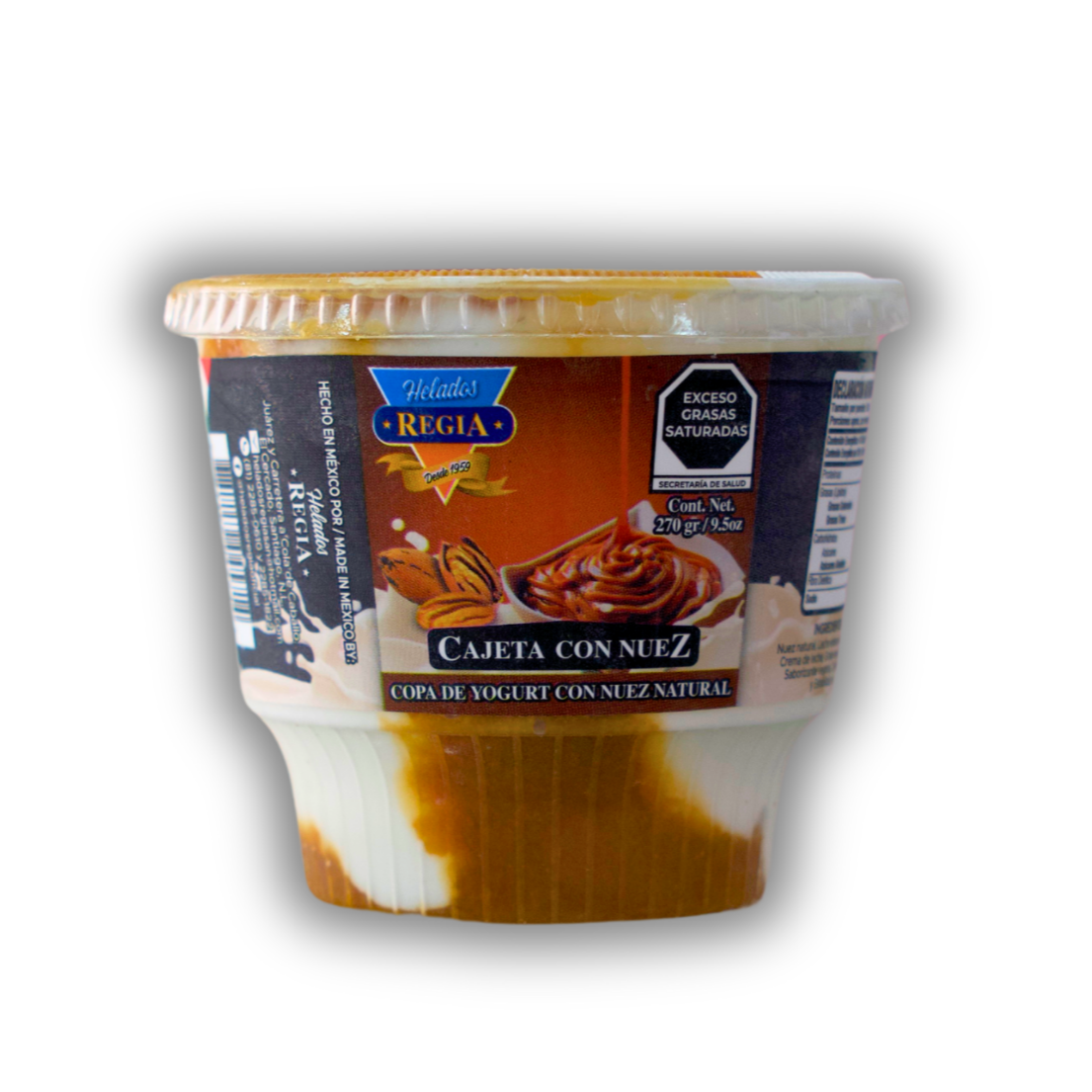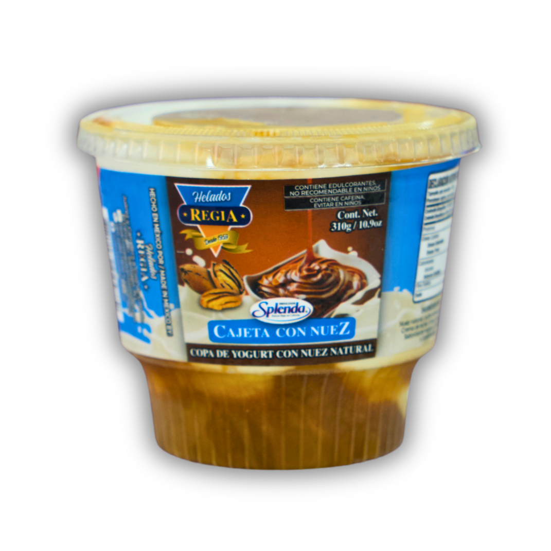 Nieve de yogurt con cajeta y nuez, endulzado con splenda.