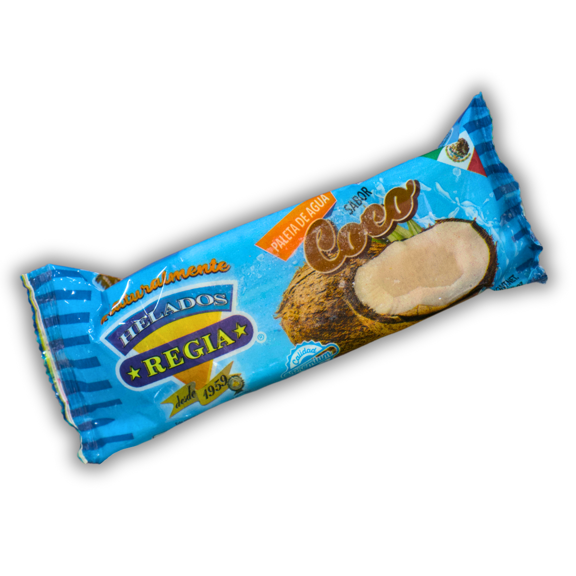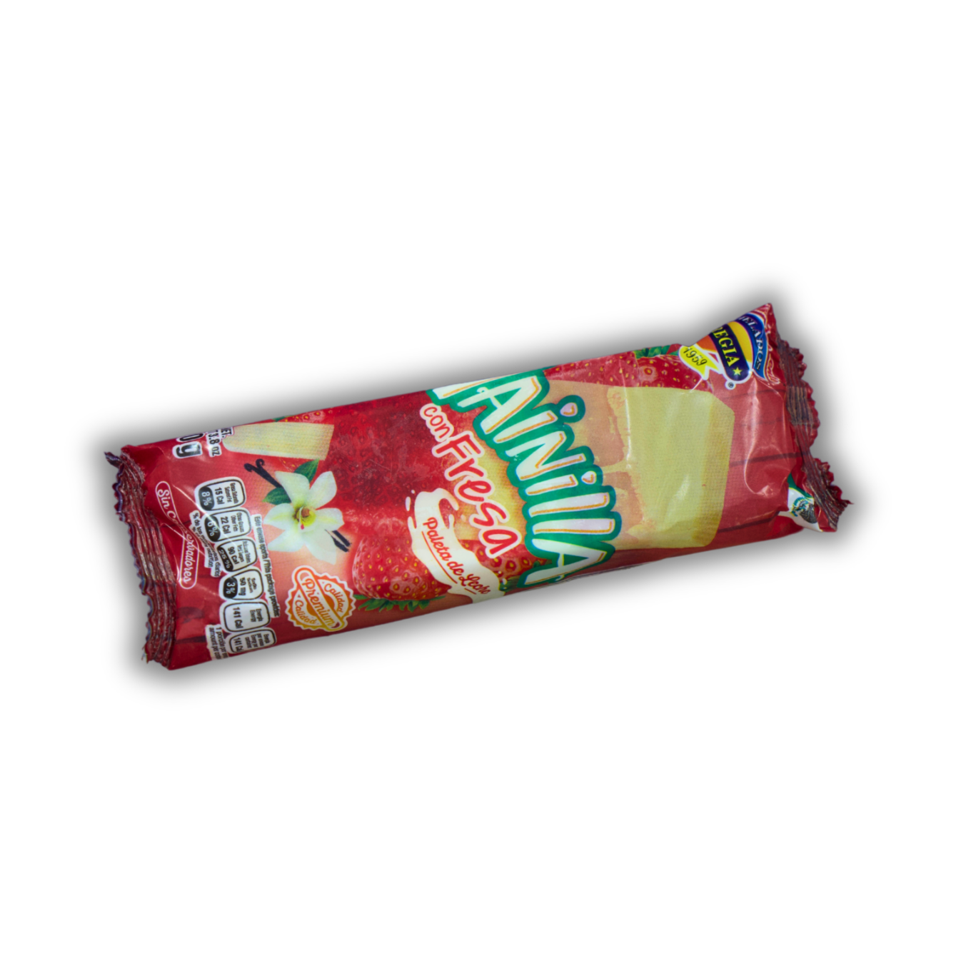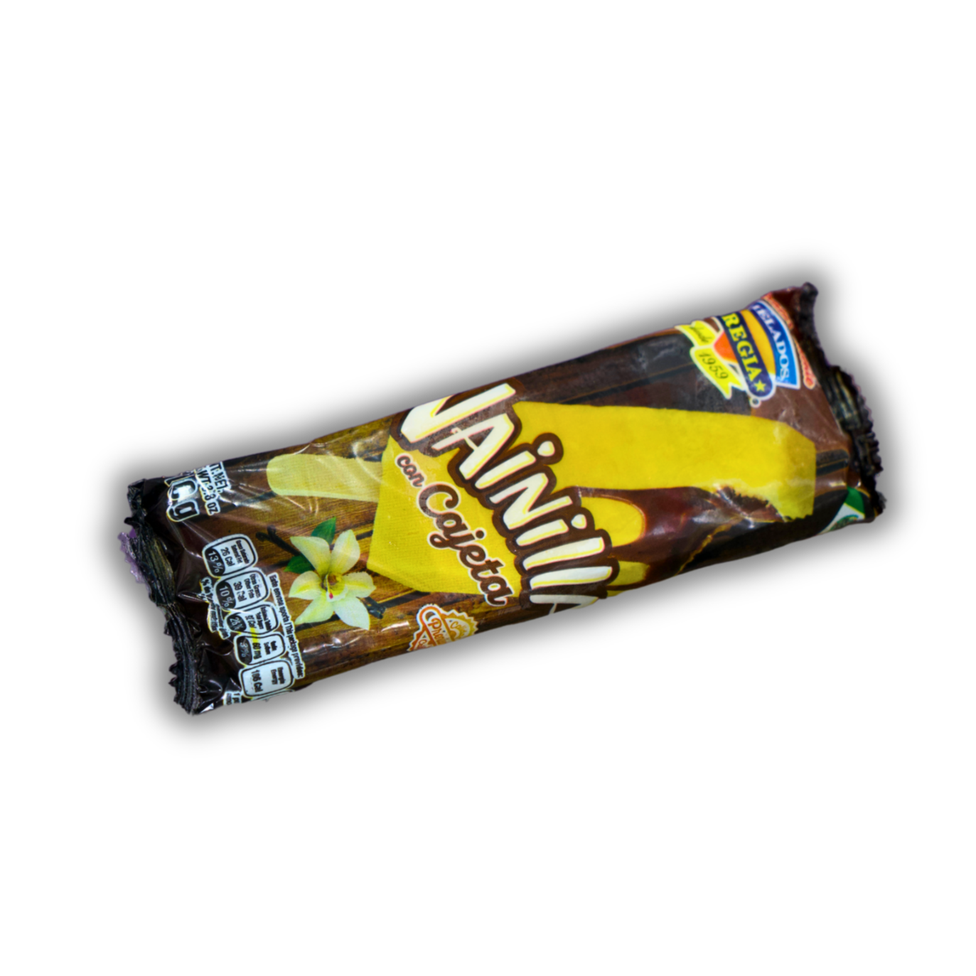 Paleta elaborada a base de crema sabor vainilla cubierta de chocolate con nuez.