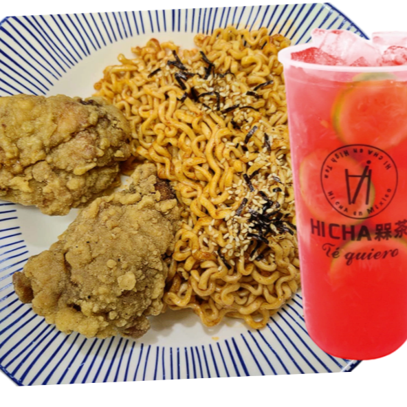 Ramen Picante con Alitas fritas(200g) y Bebida para elegir