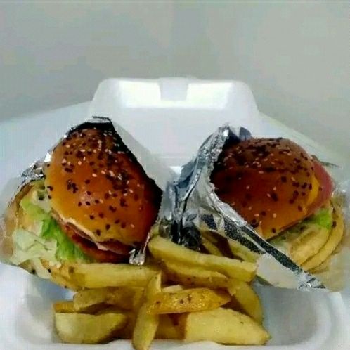 Hamburguesa de carne, queso americano, lechuga, tomate , cebolla y aderezo de la casa.