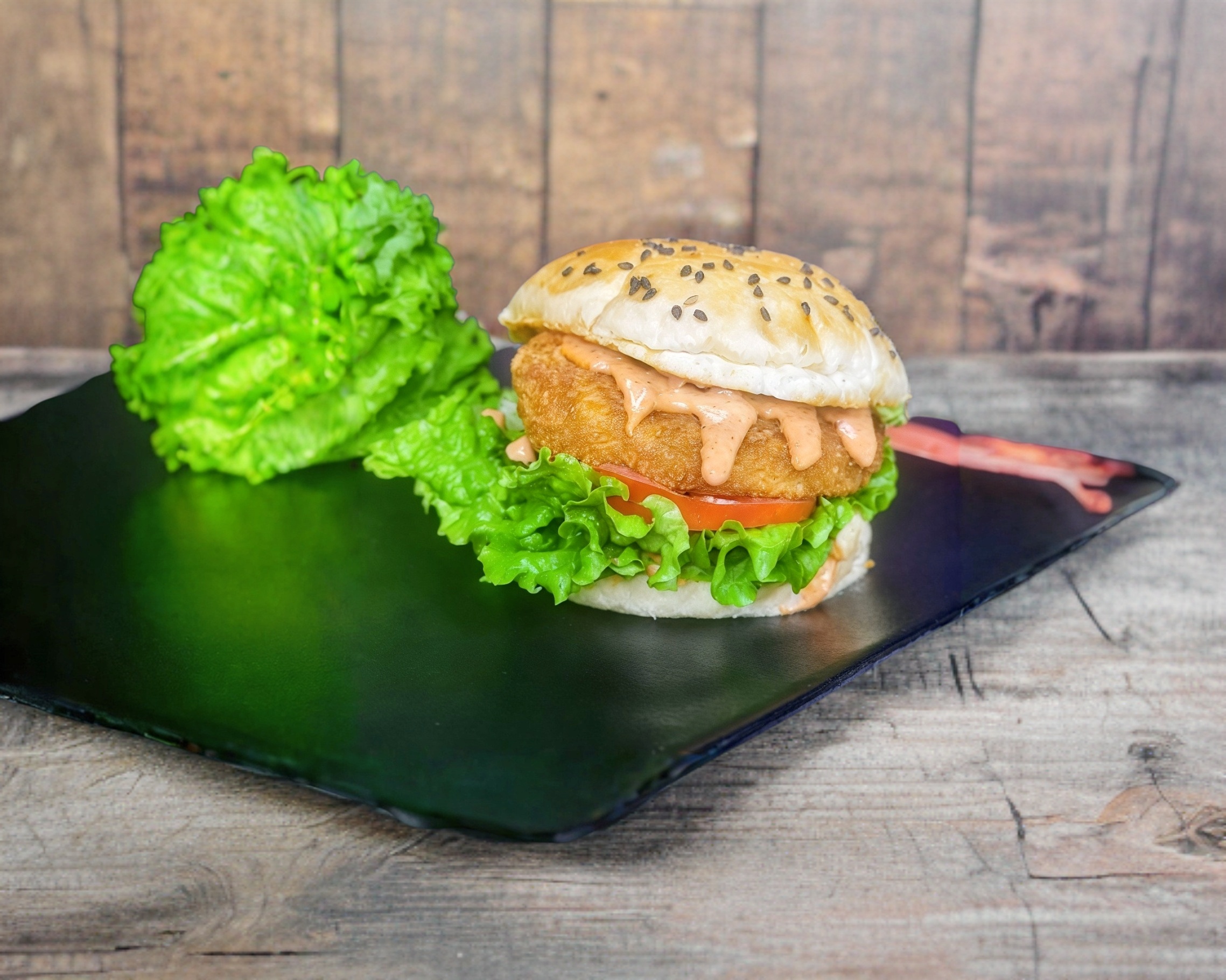 Pan Artesanal, Aderezo Casero, Lechuga Fresca, Tómate, Milanesa de Pollo Crujiente, Queso Blanco y Tú Salsa Favorita.