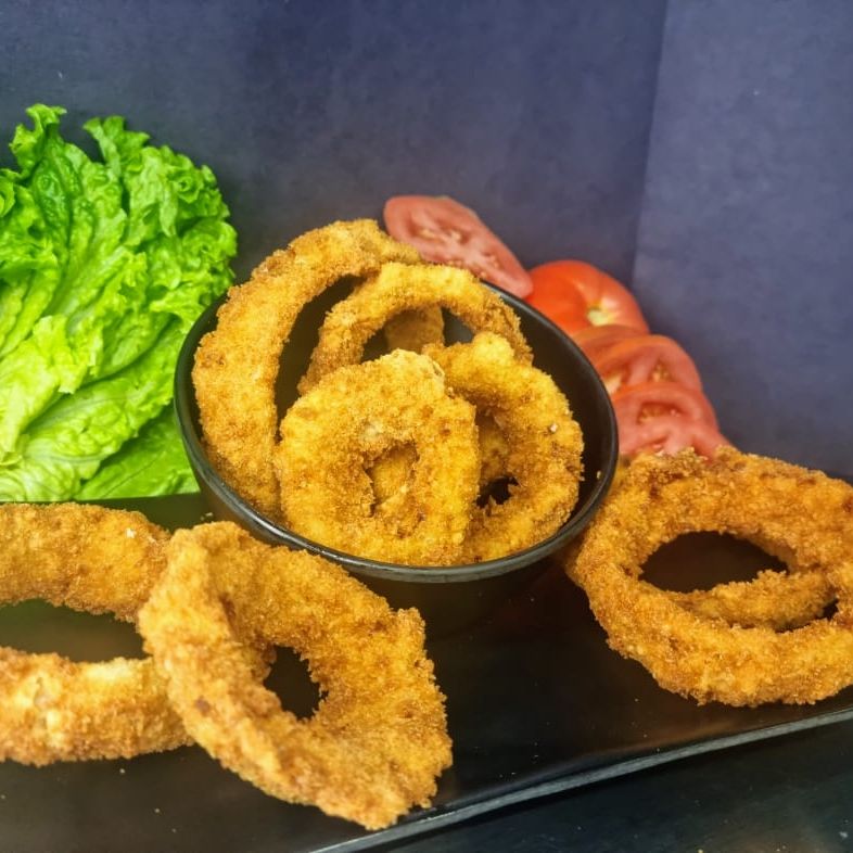 Orden de 5 Aros de Cebolla Crujientes, Acompañados de Aderezo de la Casa.