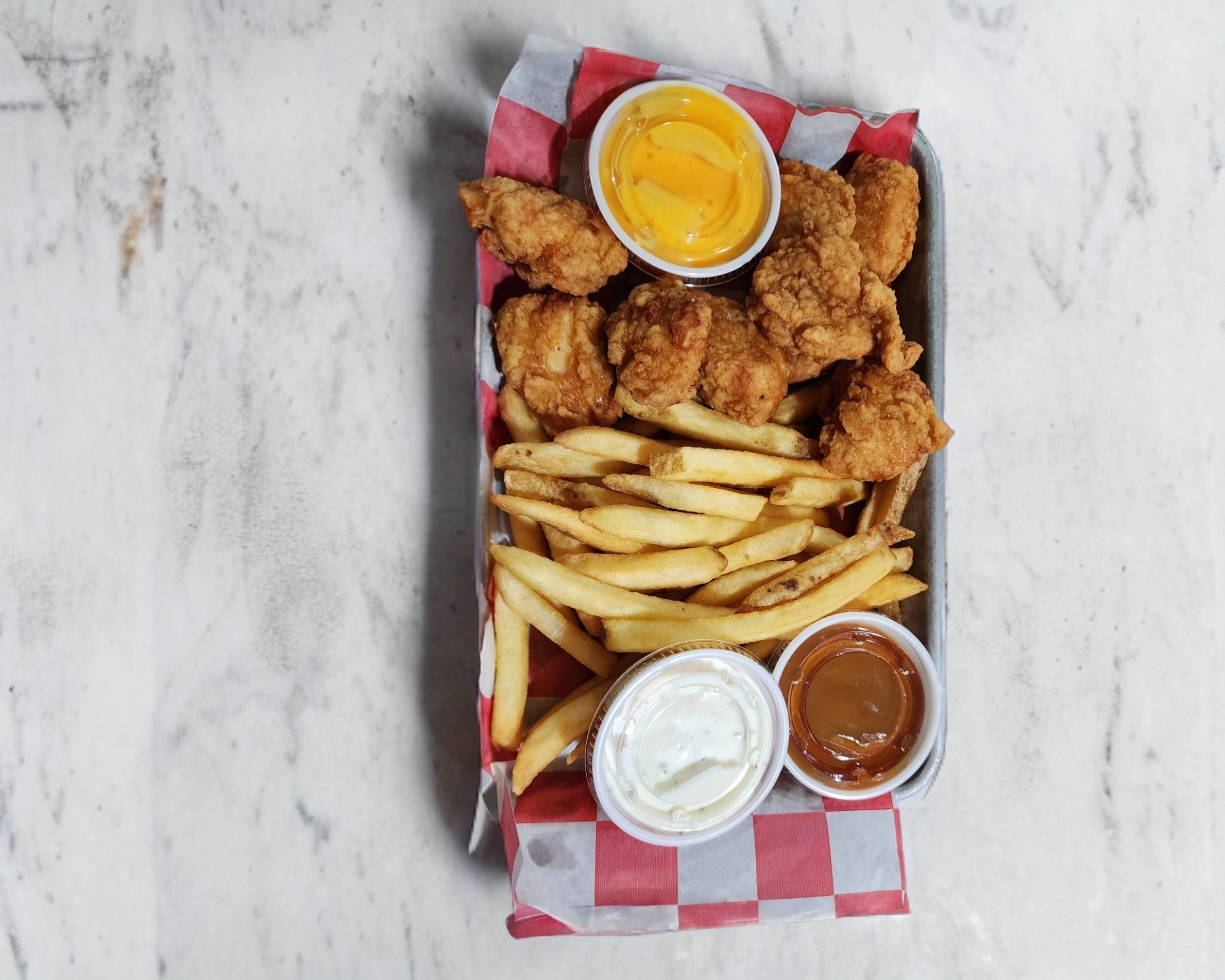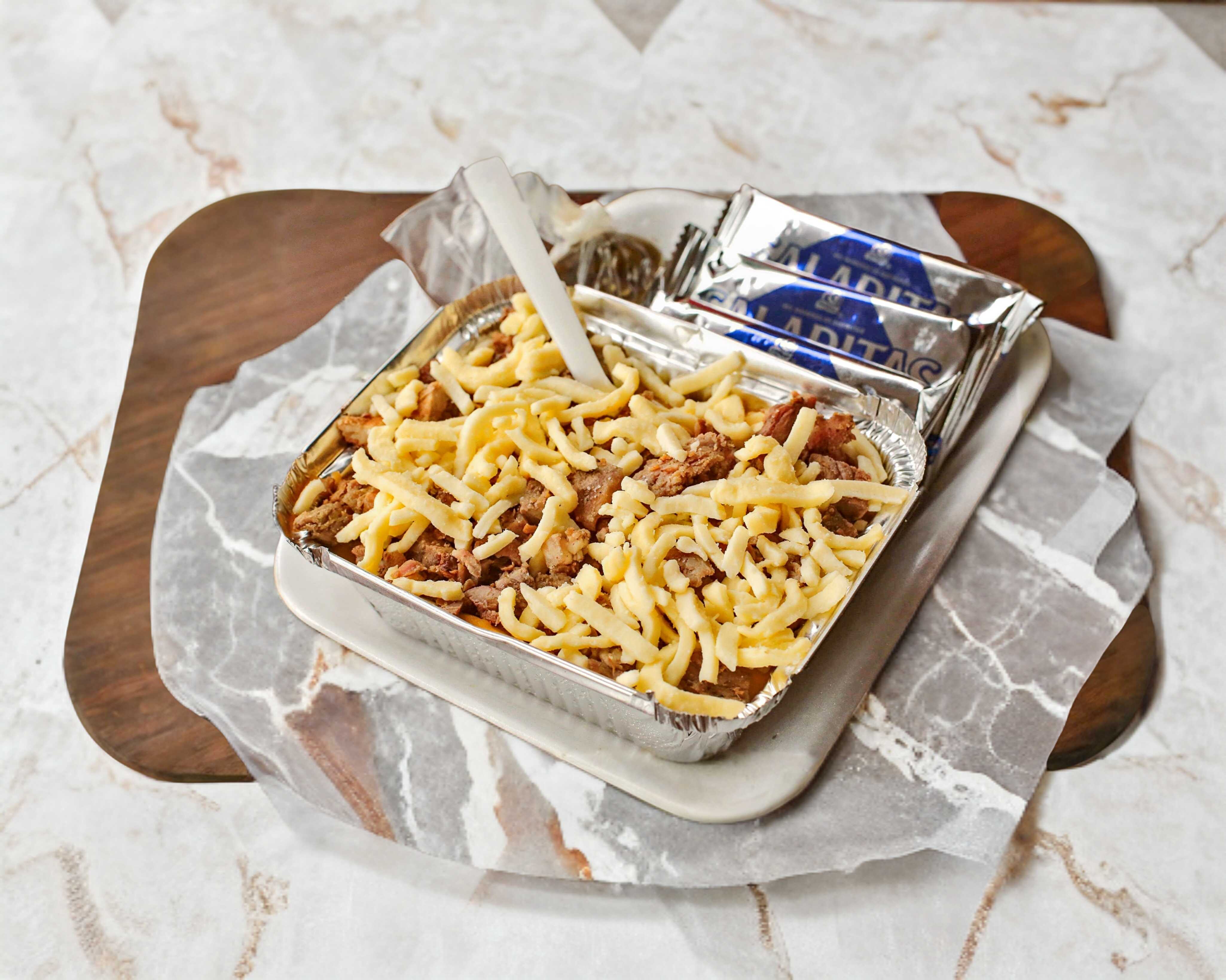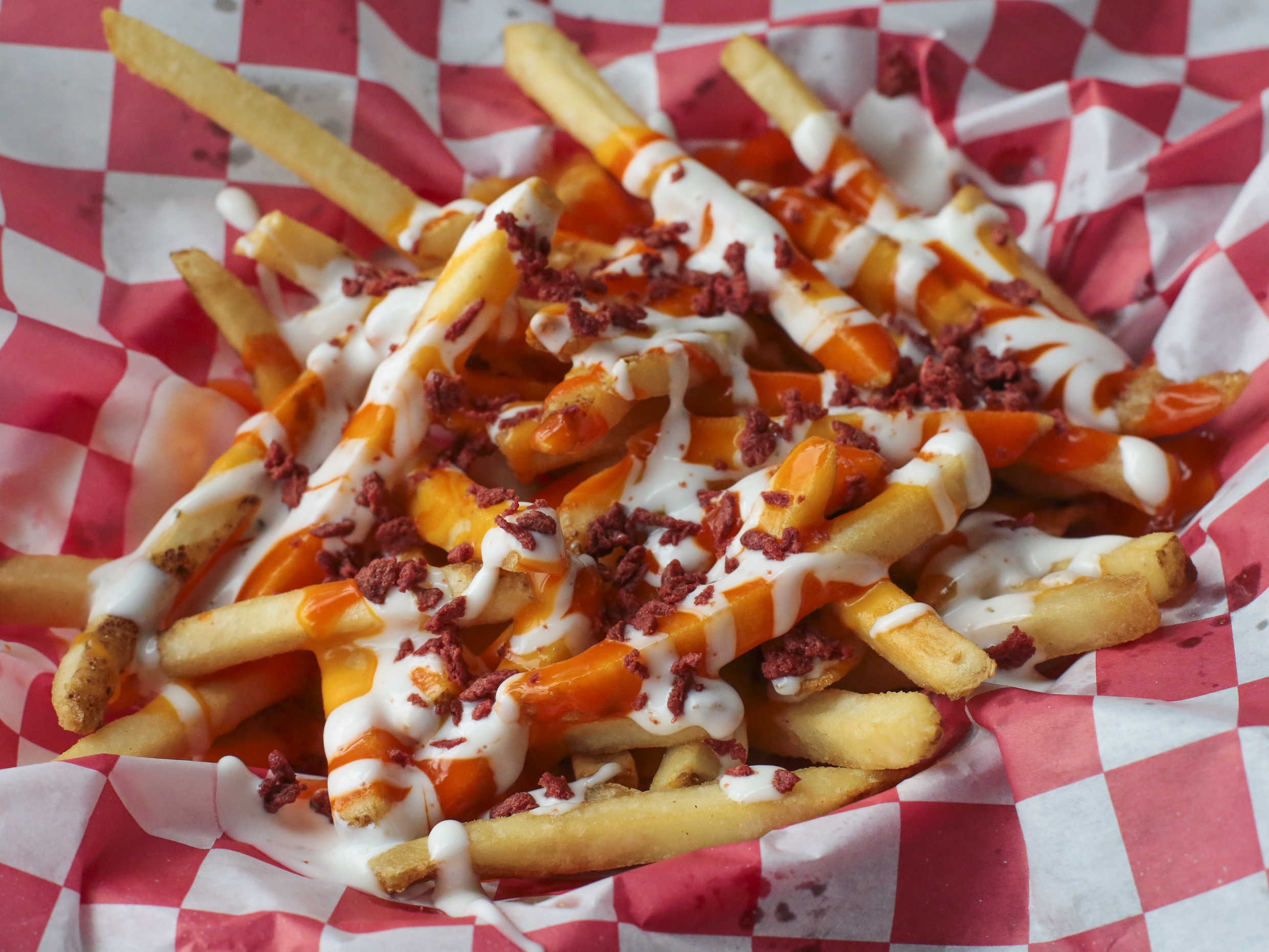 Crujientes papas, servidas con queso cheddar, salsa búfalo y ranch.