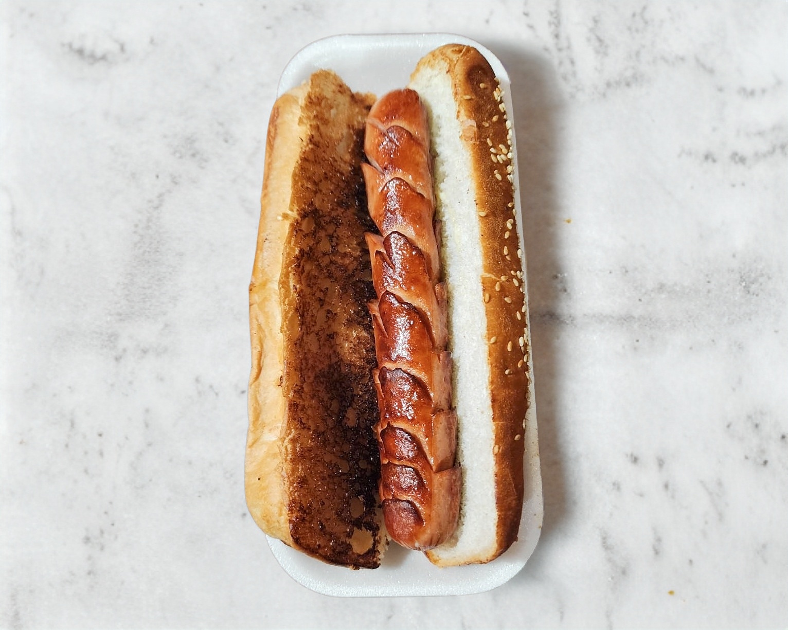 Salchicha Oscar Mayer servida en pan doradito con mayonesa