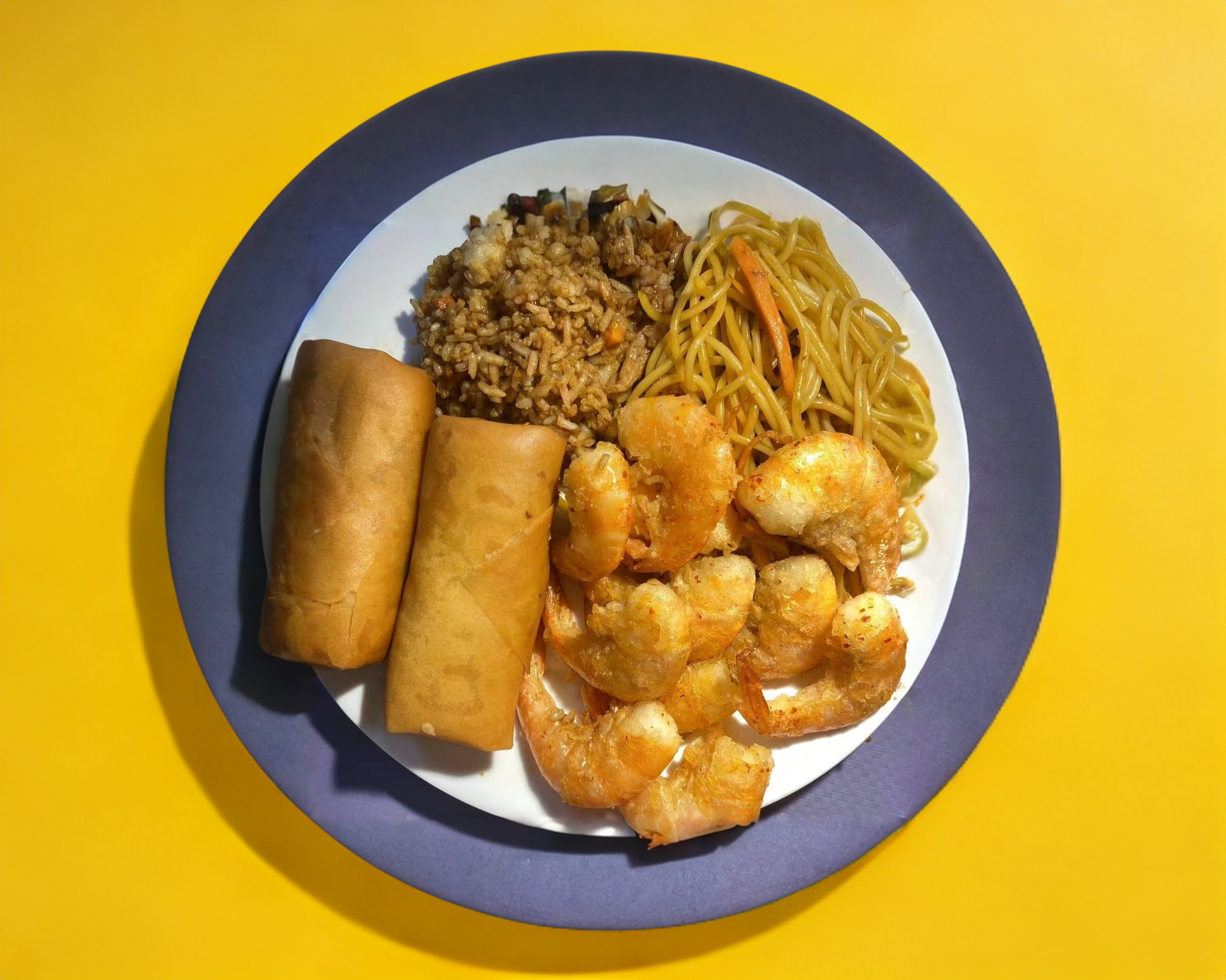 Tres Guisos Con Camarón Acompañado Con Arroz Mixto O Pasta Mixta. Elige Tres Guisos, Pollo Agridulce, Pollo Empanizado, Pollo Picante, Brócoli Con Res, Pollo Agridulce Picoso, Carne De Res Picante, Pollo Cantonés, Pollo Con Vegetales, 2 Rollos, Pollo A La Plancha O Pollo BBQ