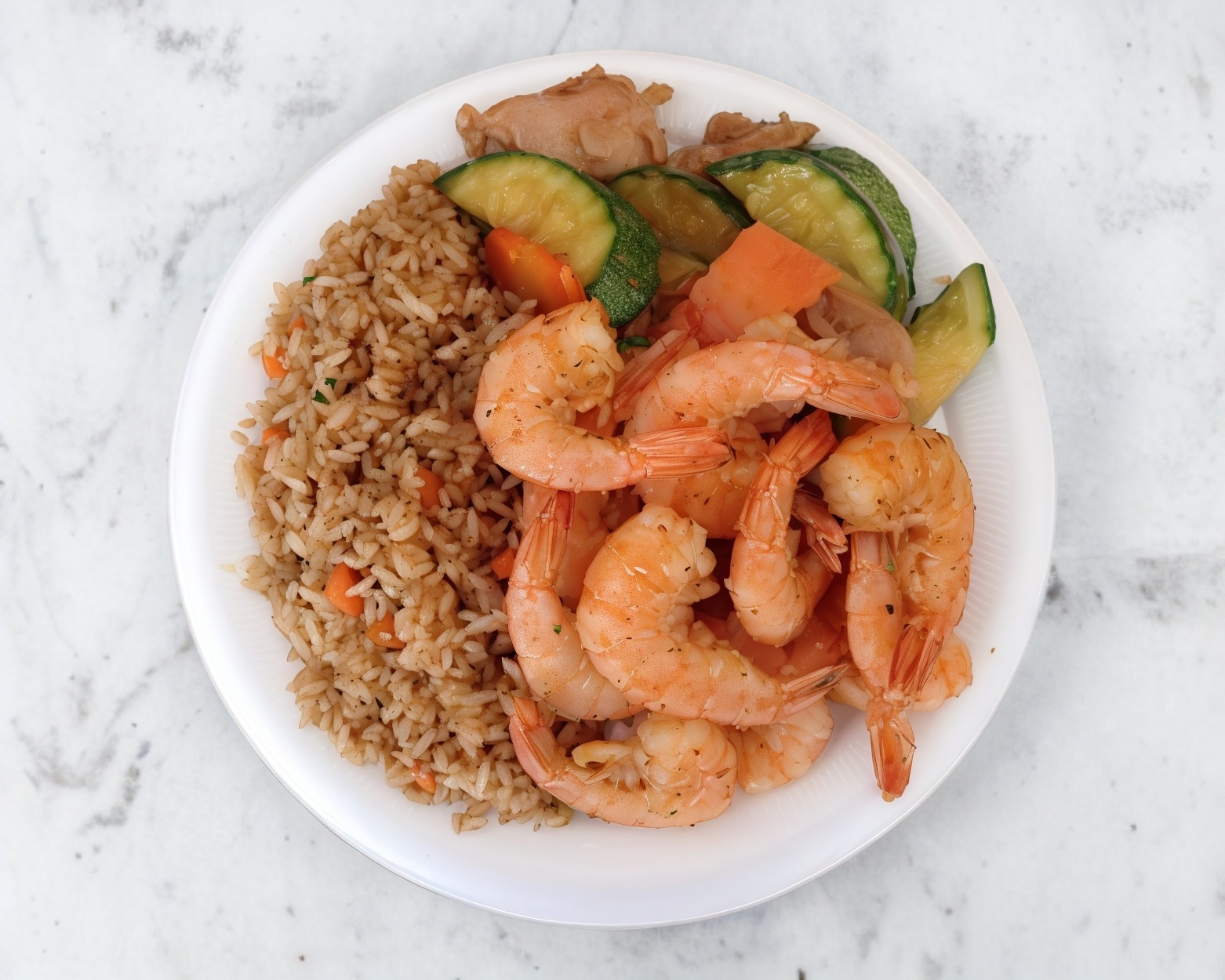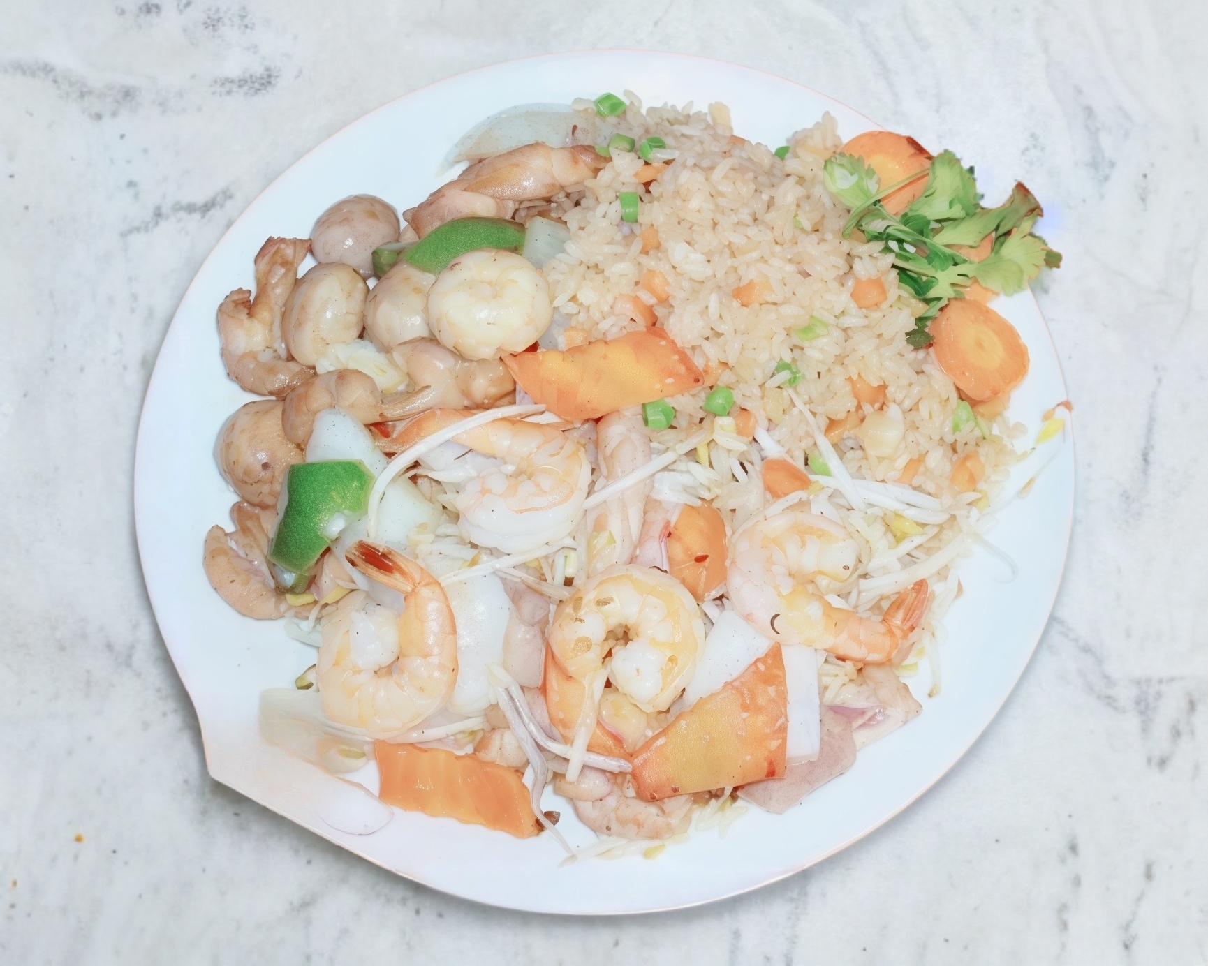 Arroz frito de mixto de camarón con pollo.