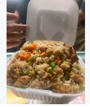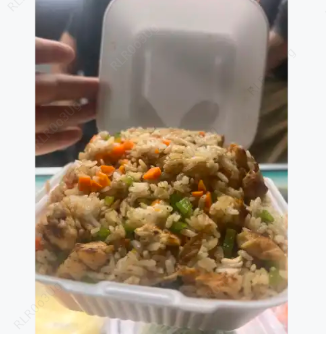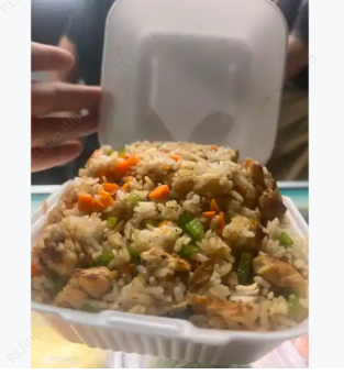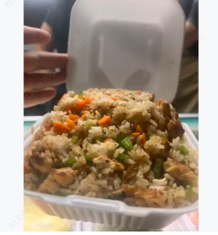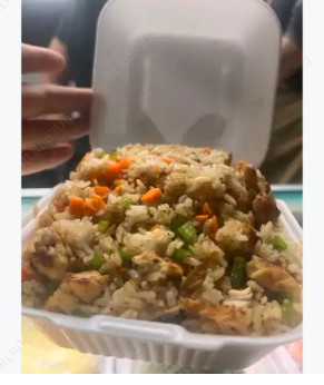 Yakimeshi de pollo con arroz frito y pollo.