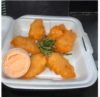 5 Camarones empanizados rellenos de queso crema.