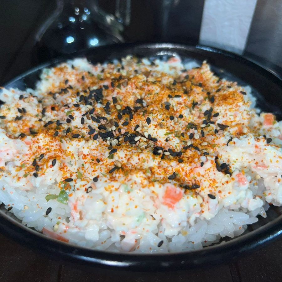 Especial con arroz especial, tampico, queso crema, furikake y togarashi.