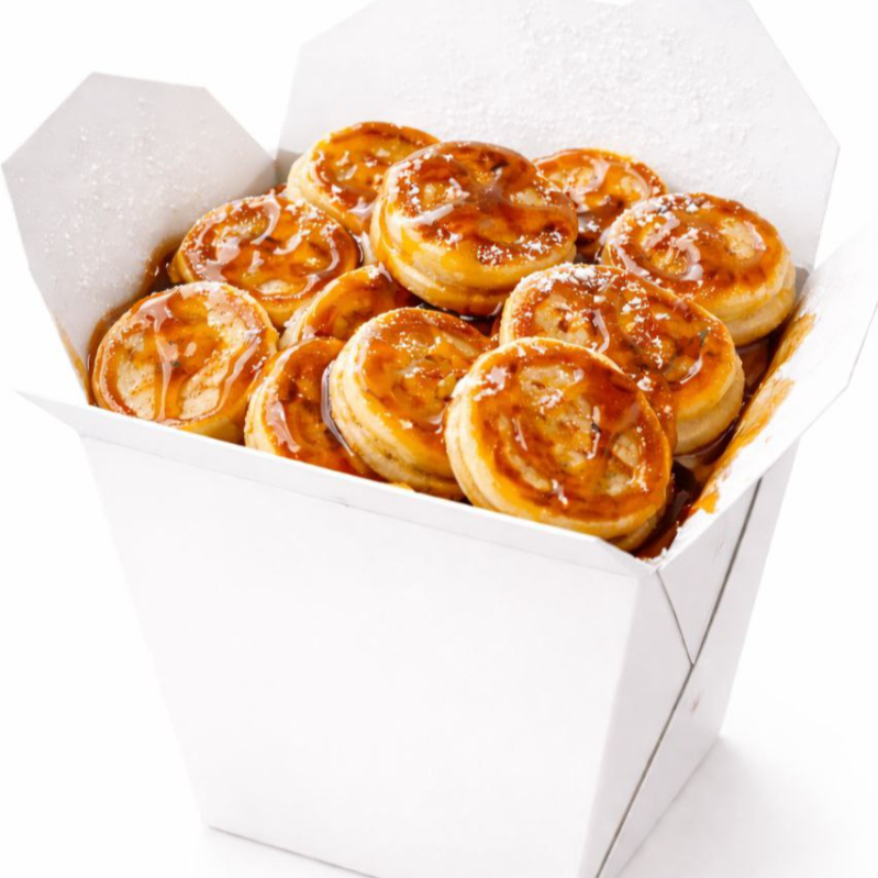 2 piezas de Hot Cakes acompañado con miel maple por separado