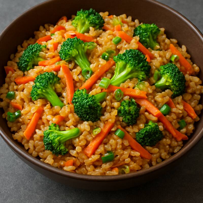 Arroz frito con zanahoria y brocoli oriental tamaño grande.