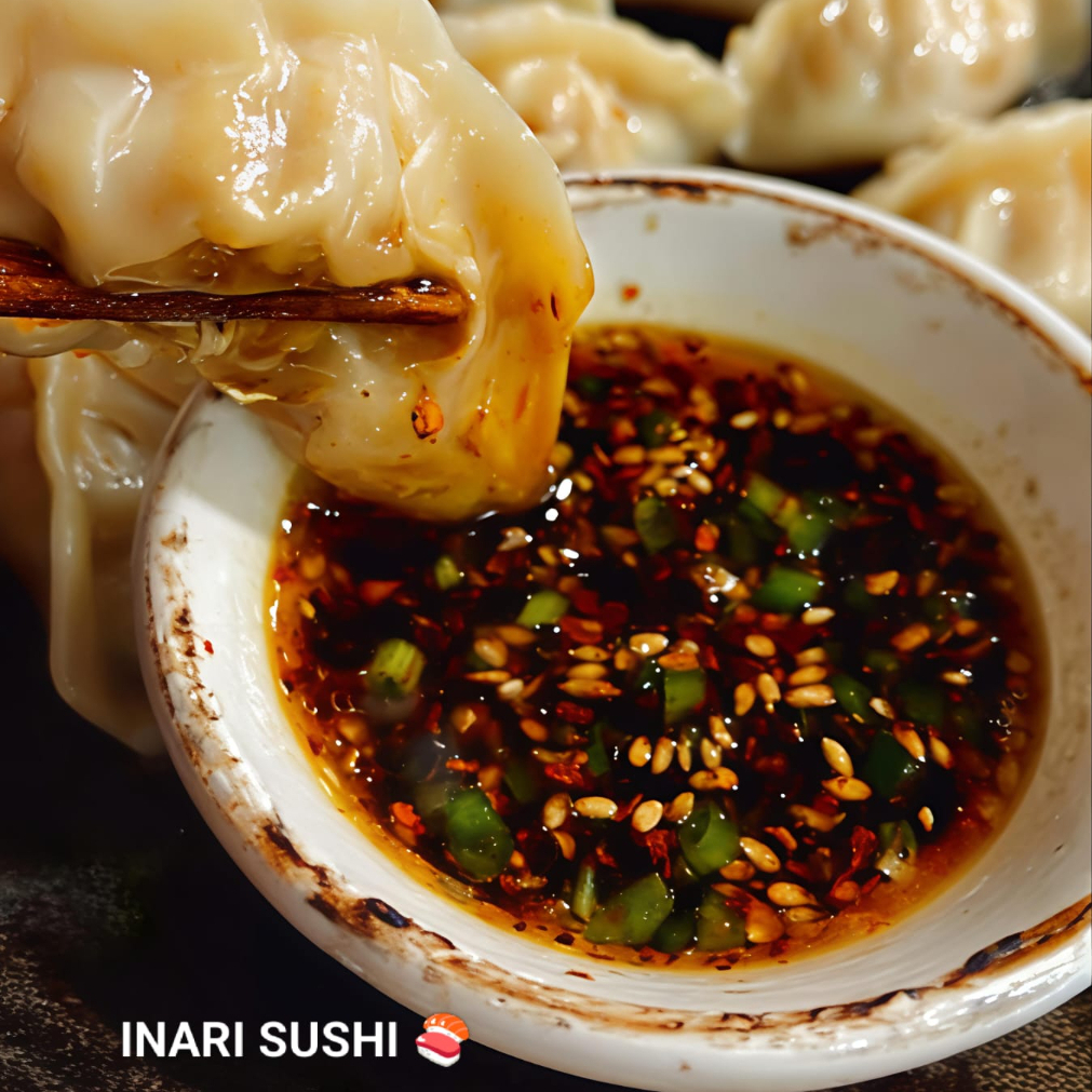 5 piezas de dumplings de res, acompañado en su salsa tradicional con un toque picante