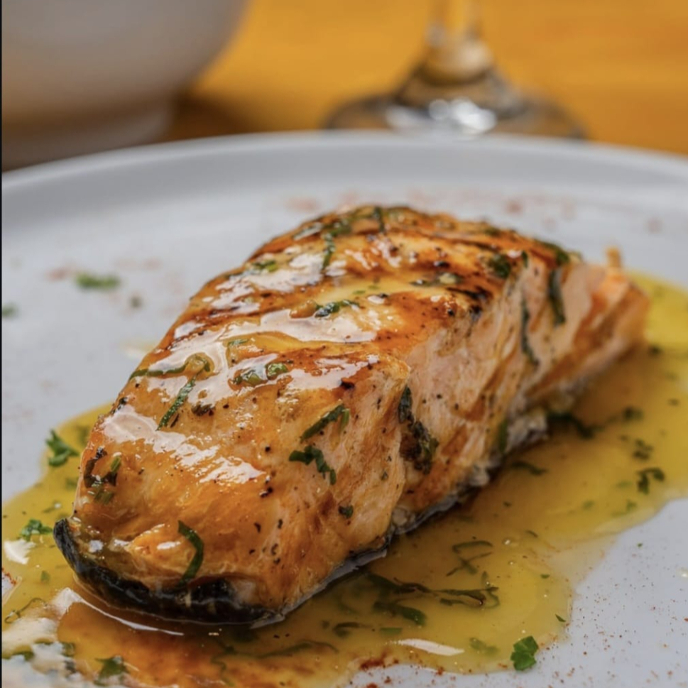 brocoli, morron, cebollin, zanahoria y camarones en una salsa de ostion