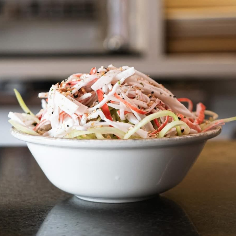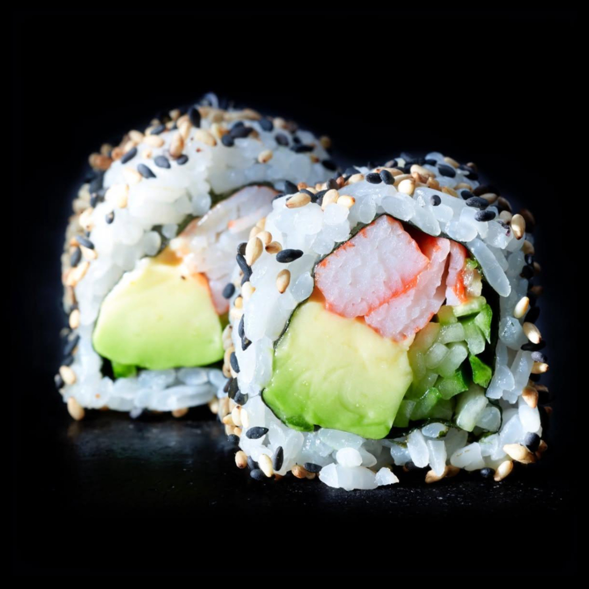 aguacate, pepino y surimi por fuera pasta tampico (rollo frio)