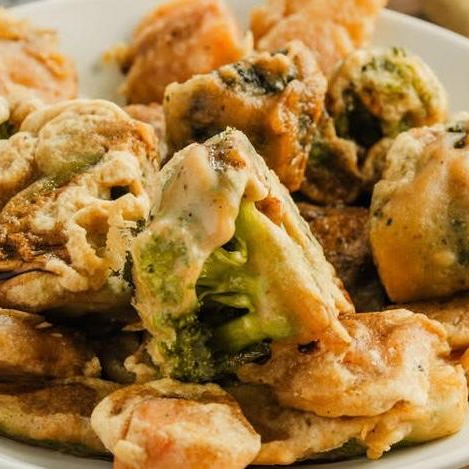 brocoli, zanahoria, pimientos, cebolla blanca, champiñon capeados en una salsa hunan