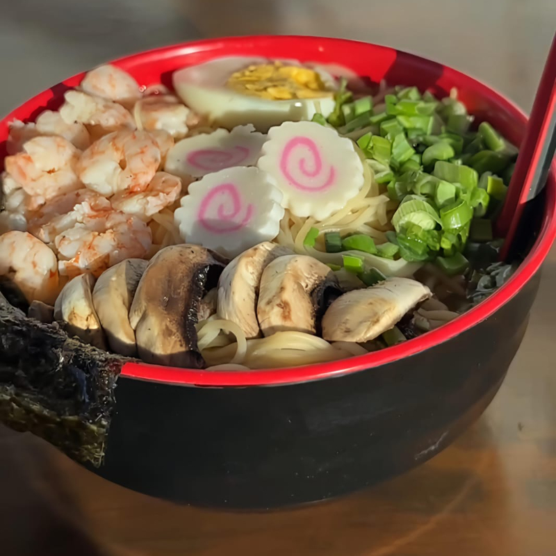 germen de soya, chmpiñon, zanahoria, alga marina, 1/2 huevo cebollin y naruto