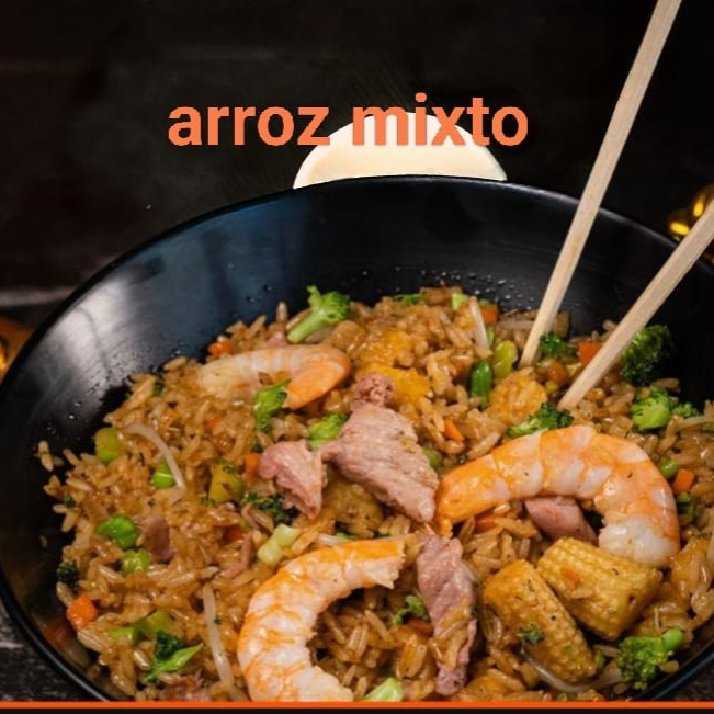 arroz frito, zanahoria, brocoli, mas trompo, auacate y adereso chipotle