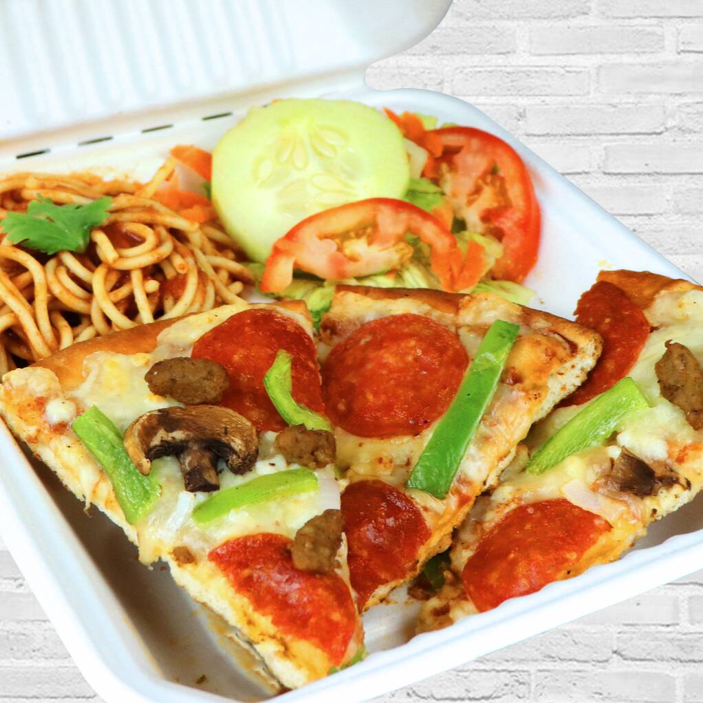 Pizza de 12” con 2 ingredientes a elegir, 4 piezas de pollo, 1 papas empanizadas ,1 papas chorreadas, 2 pan con ajo y ½ litro de spaguetti