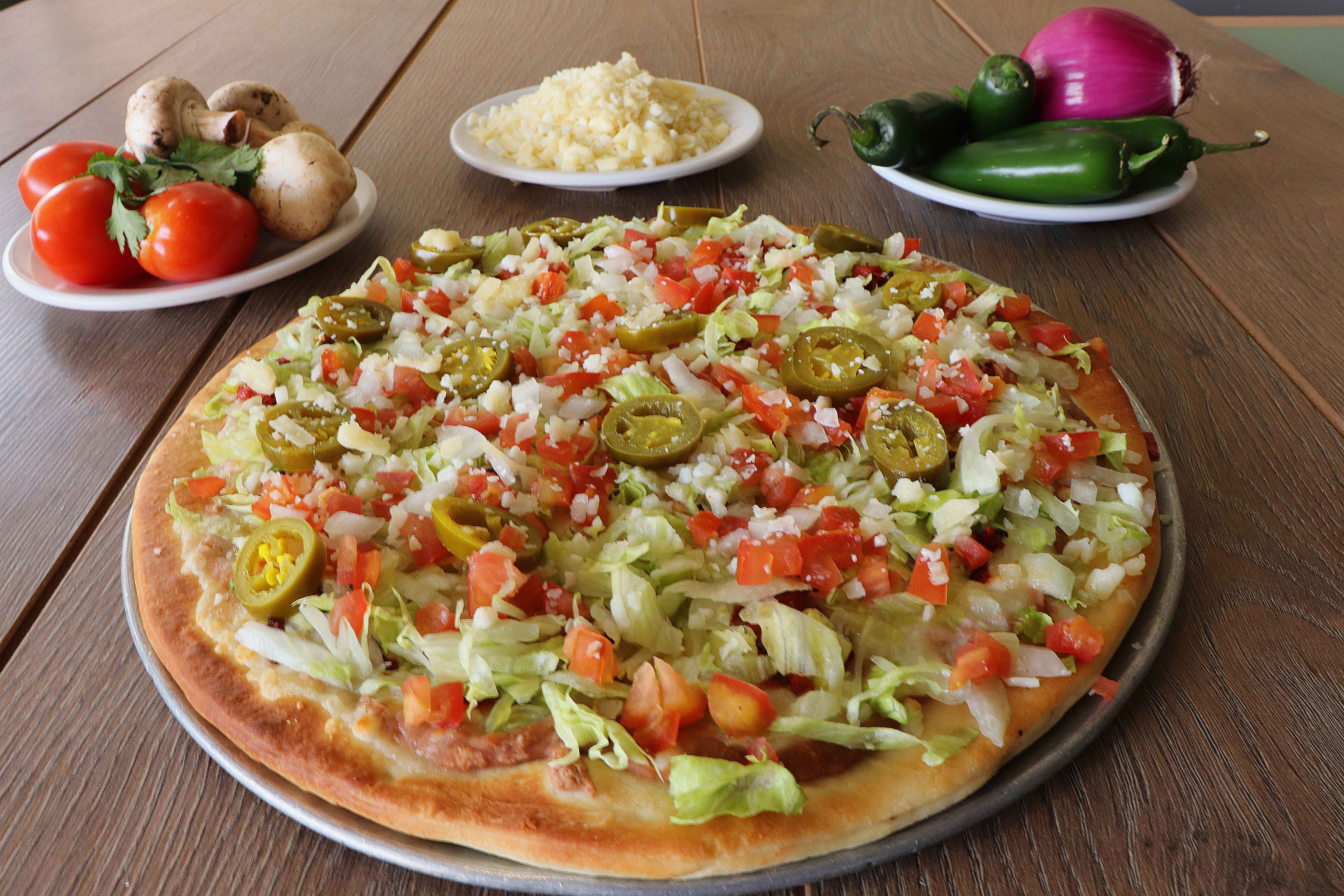 Sin salsa de tomate, frijol, doble queso, chorizo o salchicha italiana, lechuga, tomate y jalapeño, 12"