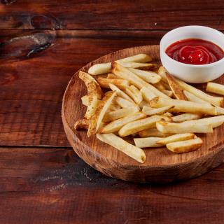 Papas a la francesa sazonadas acompañadas de catsup