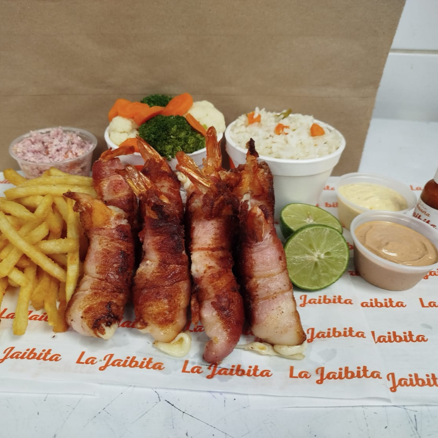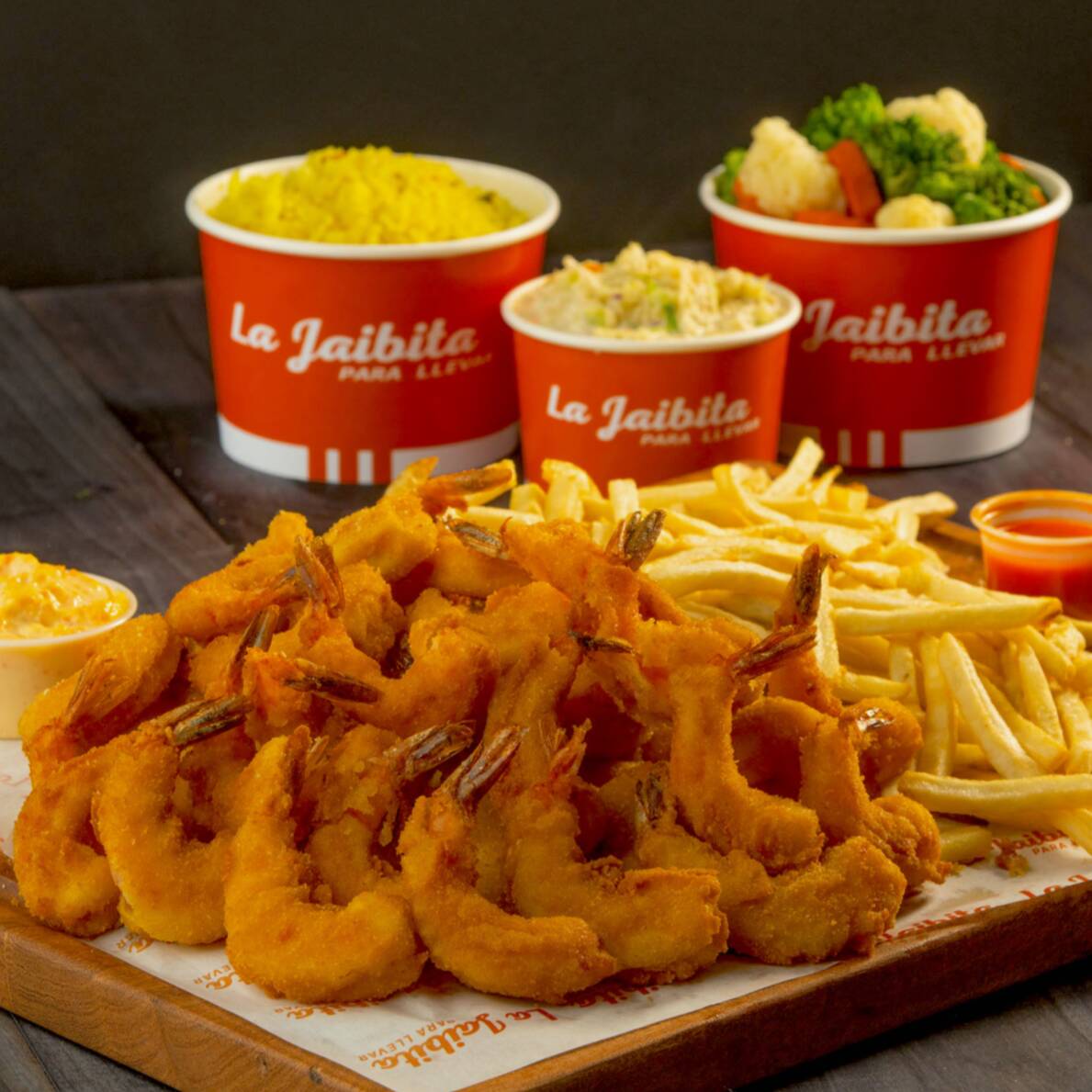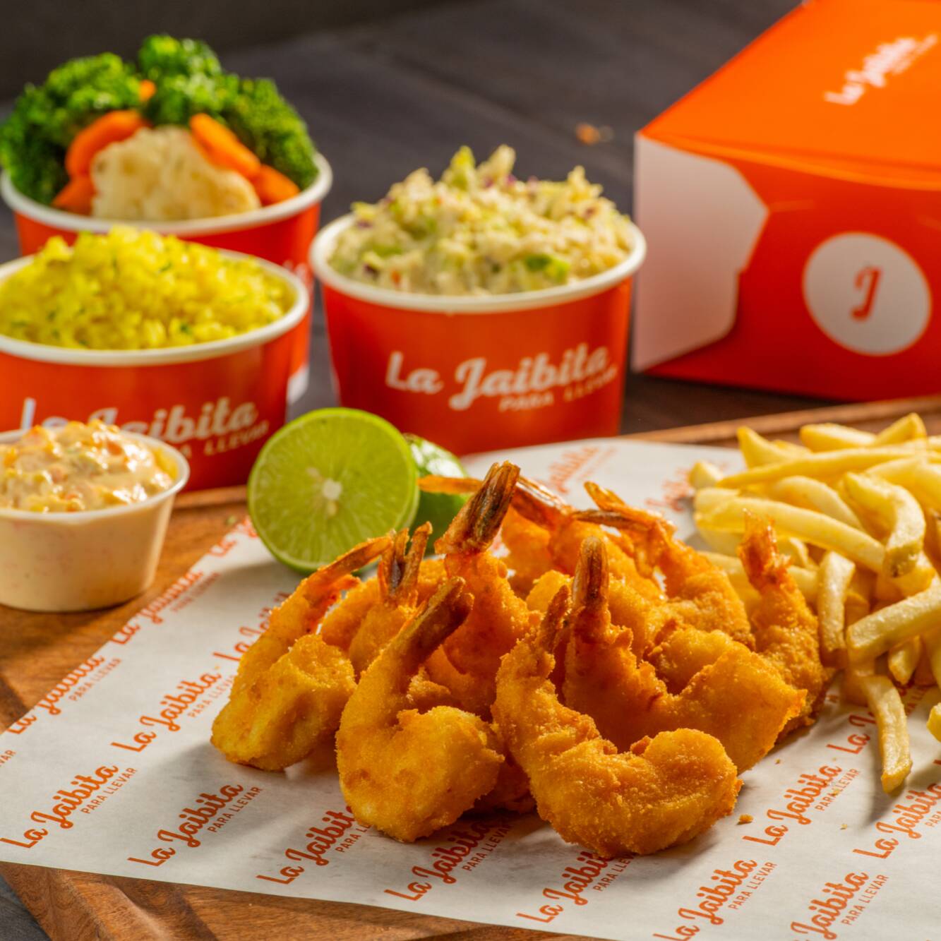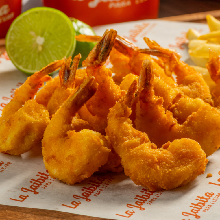 Medio kilo de camarón empanizado, papas fritas grandes, arroz, verduras mixtas y ensalada de col. Incluye limón, galletas, aderezo tártara y chipotle